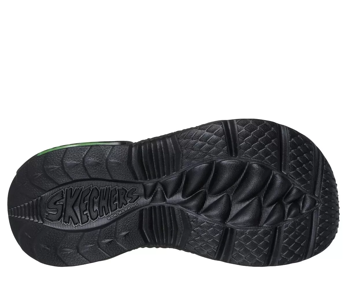 Bring on the ferocious fun wearing Skechers Creature-Splash. This sporty creature-themed sandal features a synthetic upper, Skechers adaptive closure, and a creature tech piece at the midsole.
