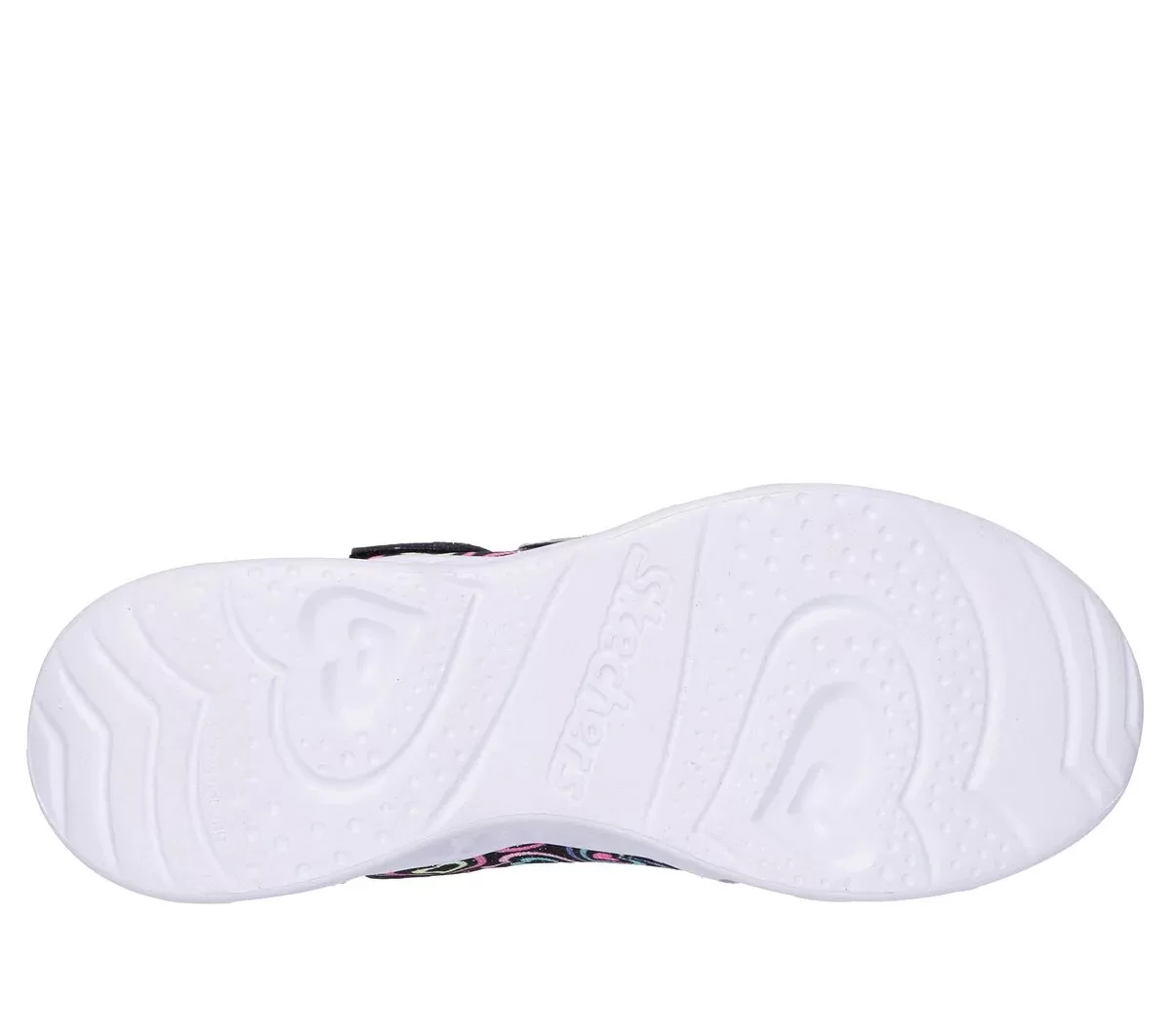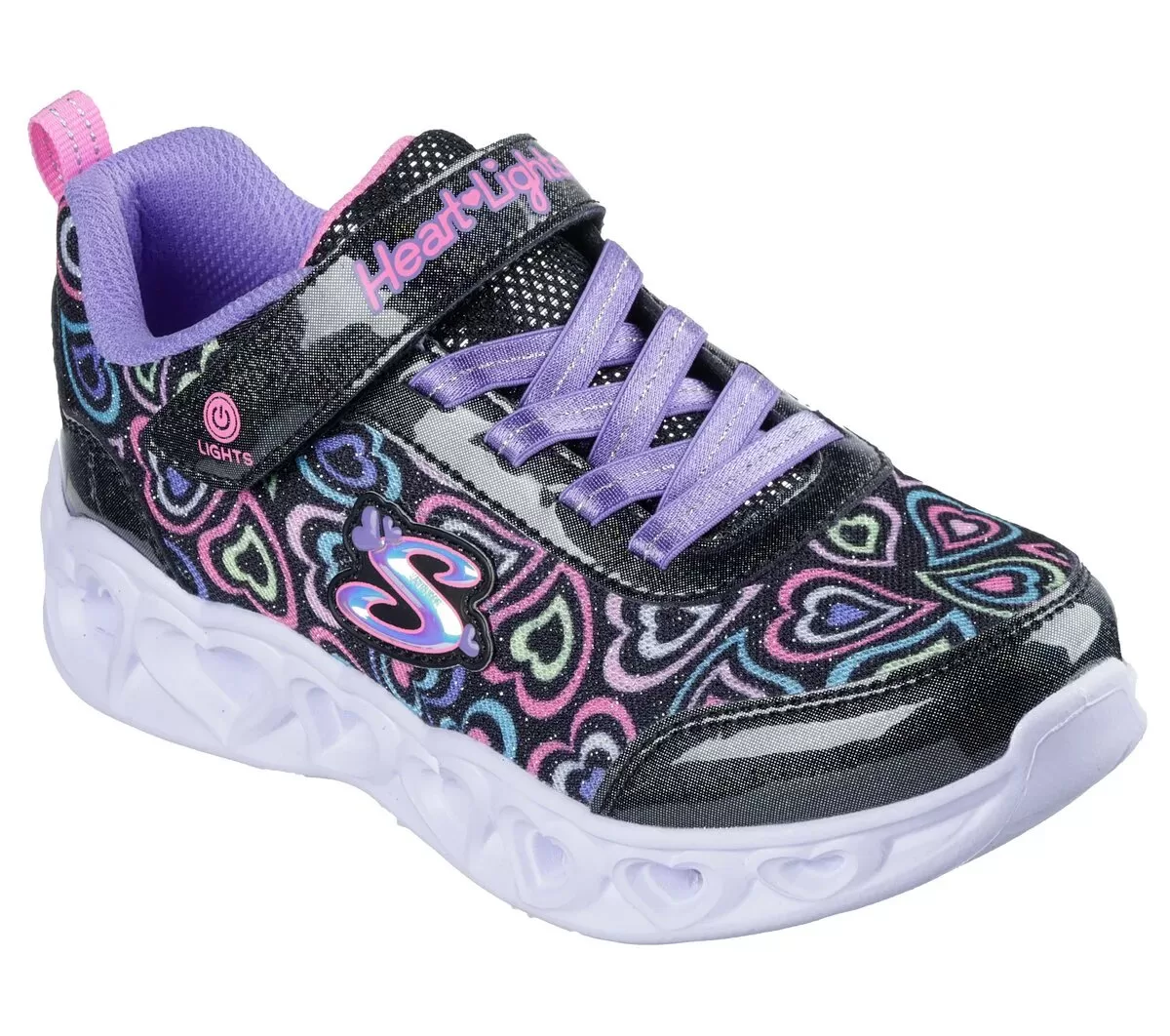 Delight them with the twinkling fun of Skechers Heart Lights – Boogie Love. This colorful sneaker features a sparkly, heart-printed synthetic upper with fixed stretch laces and Adaptive Closure, plus a heart-sculpted light-up midsole.