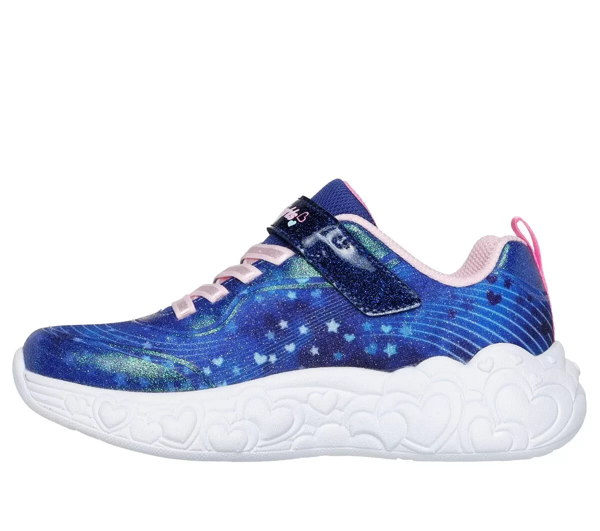 Sporty style gets lit-up and lovable with Skechers S-Lights®: Eternal Heart Lights. This lighted design features a sparkle mesh and synthetic glitter upper with stretch-laced front, and a Skechers adaptive closure.