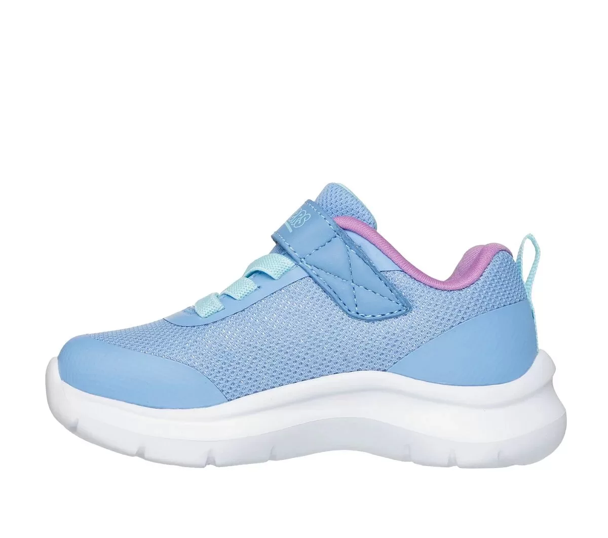 Move with an extra step of comfort wearing Skechers Skech Fast. This sporty design features a sparkle mesh and synthetic upper with stretch laces, Skechers adaptive closure and a lightweight cushioned midsole.
