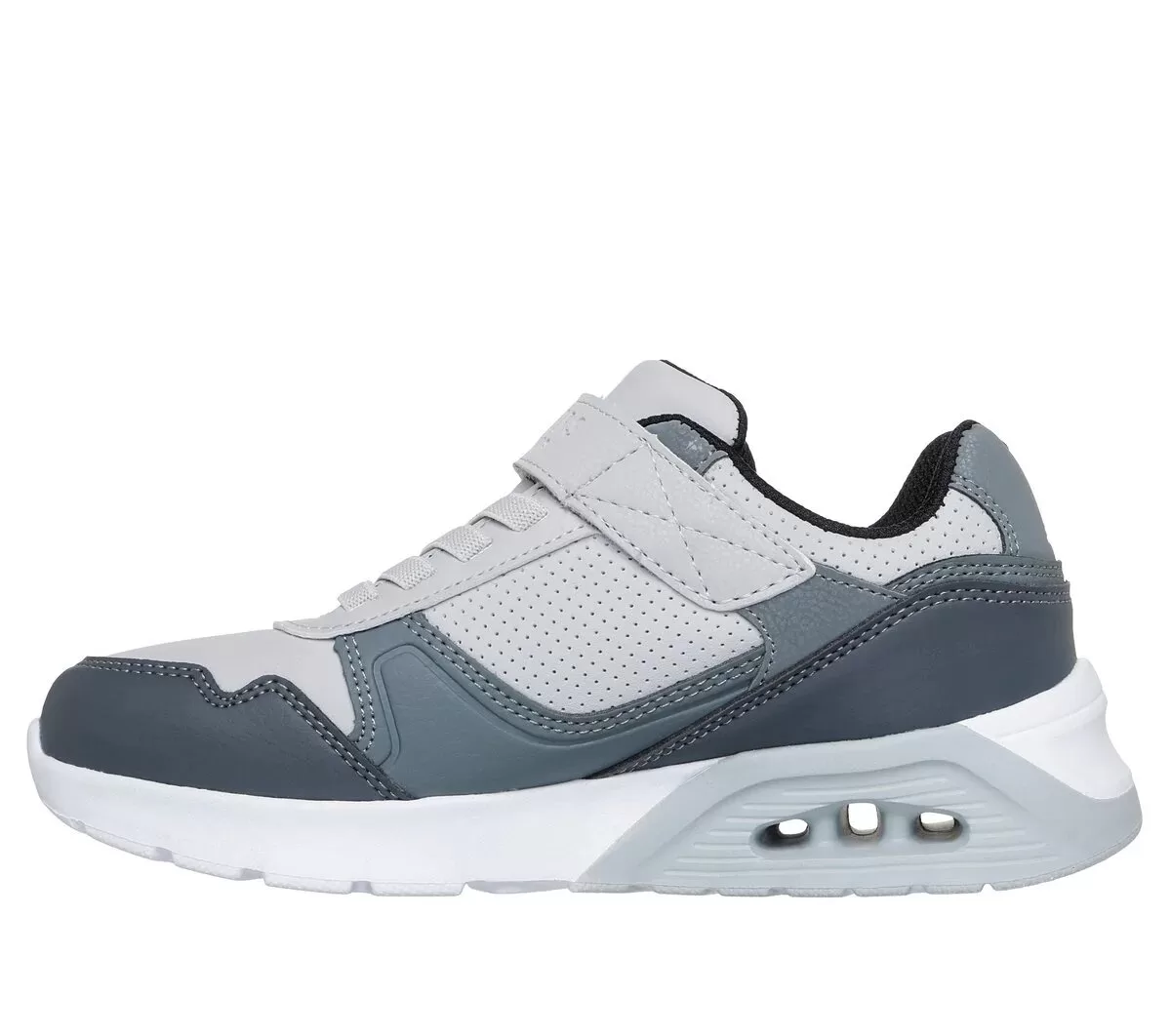 Kick it in style with the classic Skechers Street™ Uno Lite 2.0 – Pillar Duo. This lightweight fashion sneaker features a synthetic duraleather upper with quarter perforations, stretch laces, an adjustable instep strap, and a cushioned Skechers Air-Cooled Memory Foam® insole.