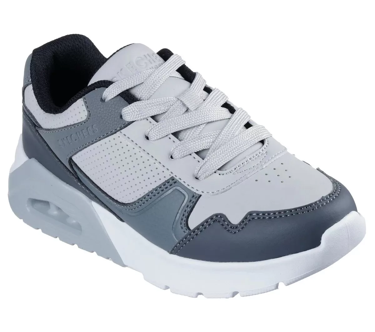 Step up your style with Skechers Street™ Uno Lite 2.0. This lace-up fashion sneaker features a smooth faux leather upper with quarter perforations, a Skechers Air-Cooled Memory Foam® comfort insole, and a lightweight midsole with cut-out detail.