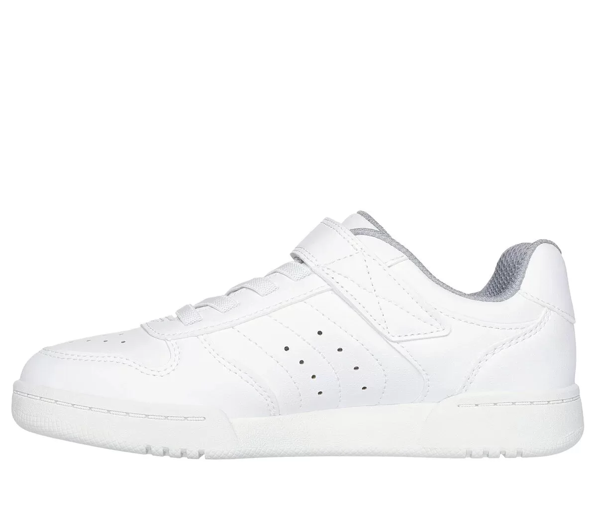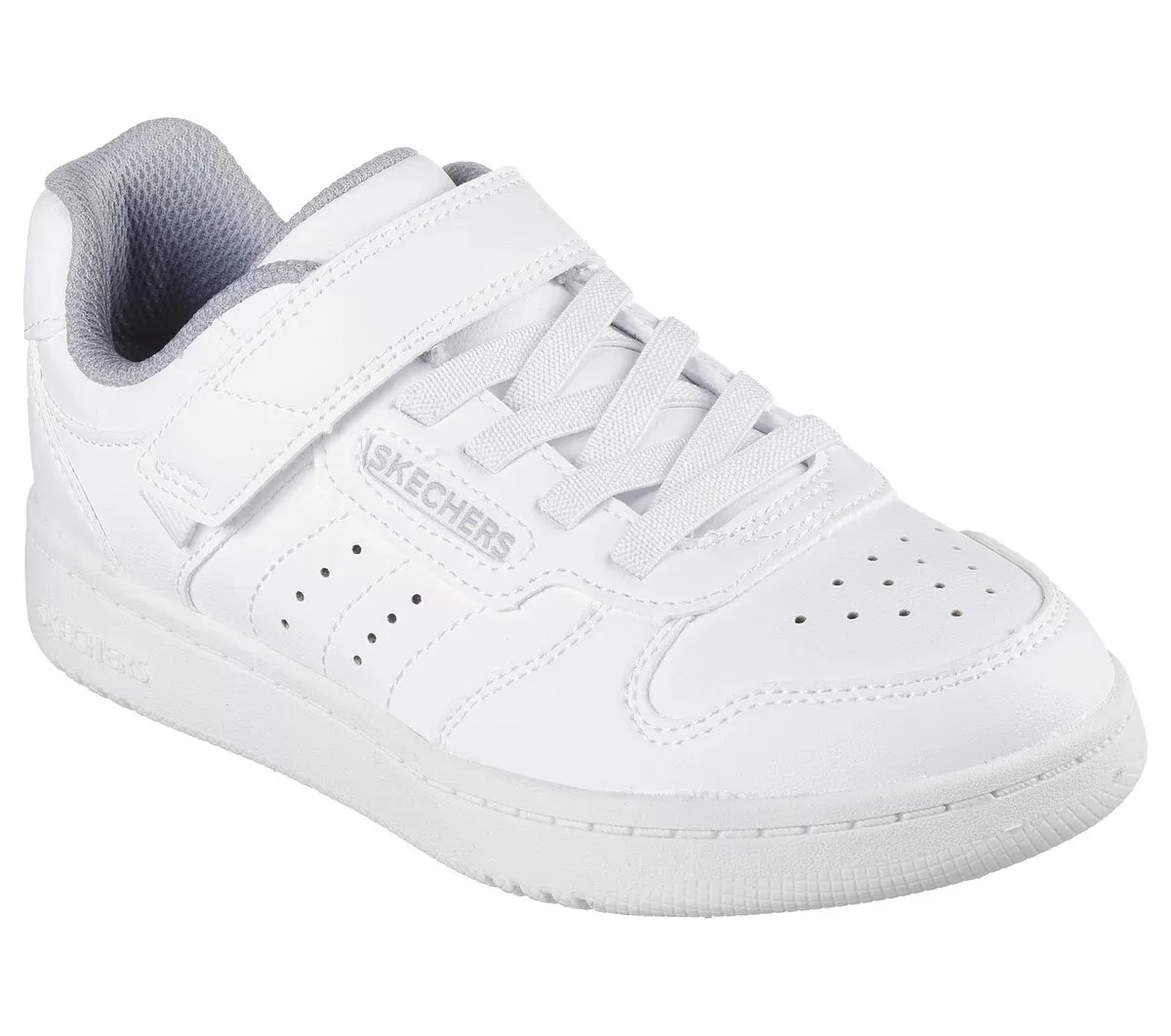 Alley-oop in comfortable court-style wearing Skechers Street™ Quick Street. This machine-washable low-top features a smooth duraleather upper with stretch laces, Skechers adaptive closure, and a cushioned comfort insole.