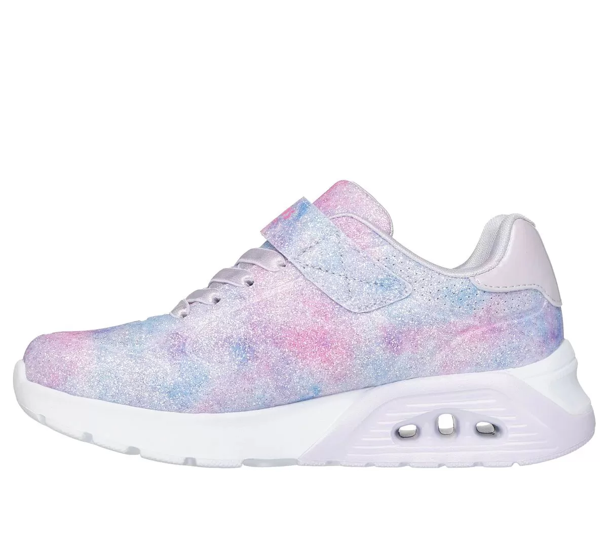 Step up your style with Skechers Street™ Uno Lite 2.0 – Glitter Spell. This lightweight Skechers adaptive closure design features an ombre glitter upper with fixed stretch laces, a hook-and-loop instep strap, a painted midsole with cutouts, and a Skechers Air-Cooled Memory Foam® comfort insole.