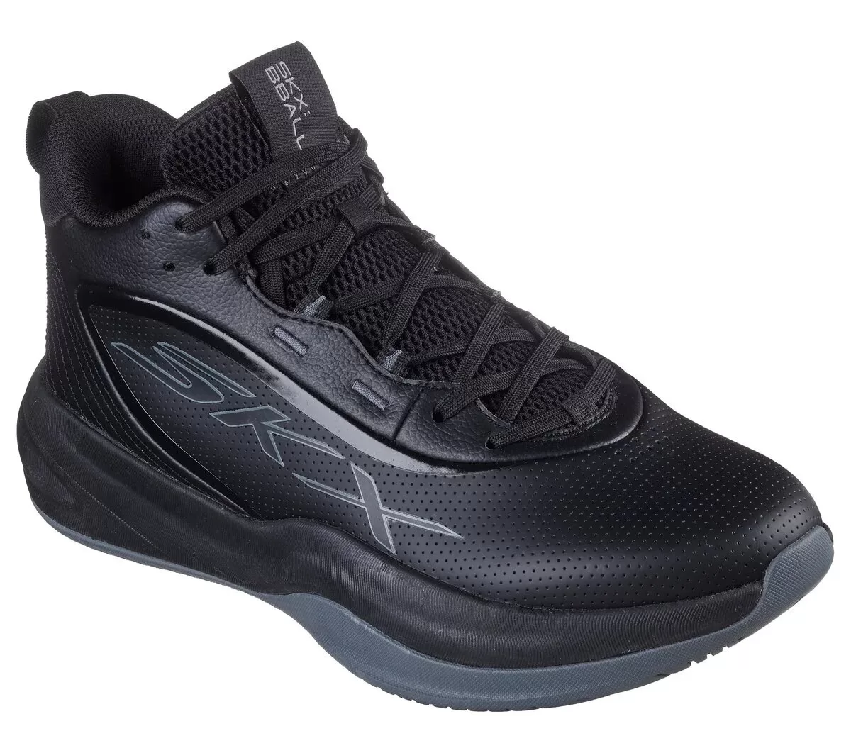 Whether driving to the hoop or locking down defense, you’ll have the winning edge with Skechers Basketball®: SKX League™. This high-top performance court shoe delivers optimal comfort and exceptional stability. A breathable perforated leather upper promotes air flow, while resilient Skechers MOVE FOAM™ insoles and innovative 5-GEN® Foam cushioning respond quickly underfoot.