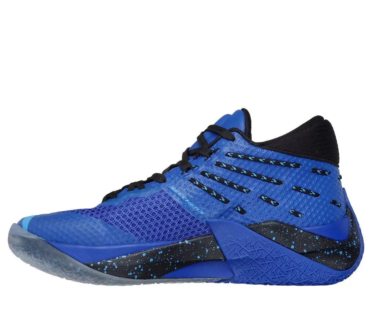 Take your game to the next level with Skechers Basketball®: SKX REIGN™, footwear engineered to promote a quick first step, speed, and intense traction. This mid-top lace-up features a comfort collar, lock-down heel, and a strategically-placed mid-foot wrap for players who prefer more stability. The design is enhanced with a resilient Skechers HYPER BURST PRO™ sock liner, a dual-density Skechers HYPER BURST® midsole, a carbon-infused plate for explosive take-offs, and a Goodyear® Performance Outsole for superior grip and long-lasting durability.
