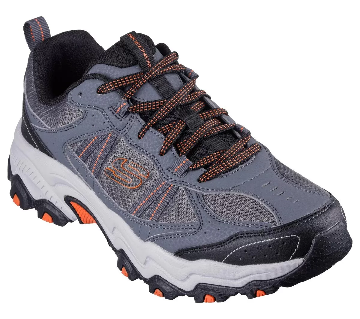 Hit the trails in athletic comfort with Skechers Stamina AT – Upper Stitch. This lace-up hiking trail design features a synthetic duraleather and mesh upper with a cushioned Skechers Memory Foam™ insole.