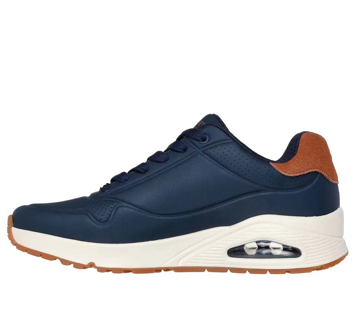 Sporty refined style meets comfort in Skechers Street™ Uno – Suited On Air. This lace-up classic jogger style features a debossed durabuck upper with suede heel trim, a Skechers Air-Cooled Memory Foam® insole, and Skech-Air® visible airbag midsole.