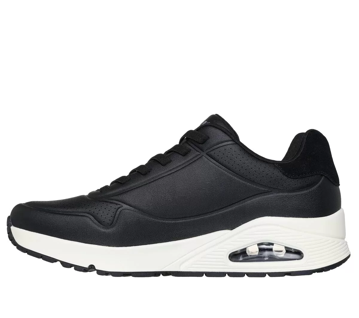 Smooth, sporty style and easy-wearing comfort combine in Skechers Street™ Uno – Tailored Air. This No Tie Fit™ sneaker features a duraleather upper with fixed stretch laces, a Skechers Air-Cooled Memory Foam® insole, and a Skech-Air® visible airbag midsole.
