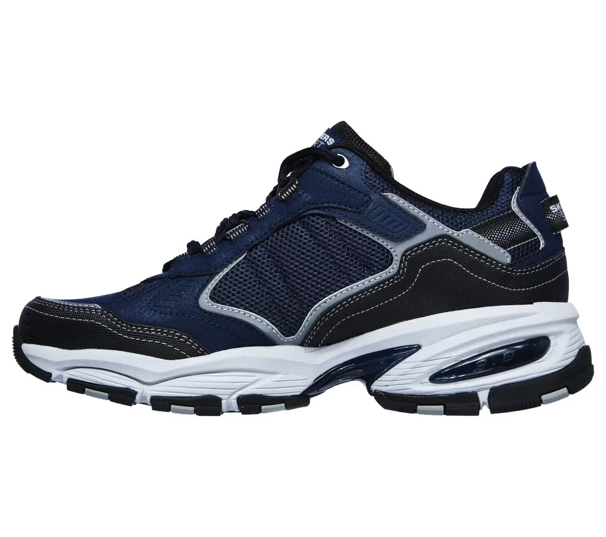 A sporty classic look gets an upgrade in durable comfort with Skechers Vigor 3.0. This lace-up features a smooth leather and synthetic upper with a Skechers Air-Cooled Memory Foam® comfort insole, plus a durable Goodyear® Performance Outsole.