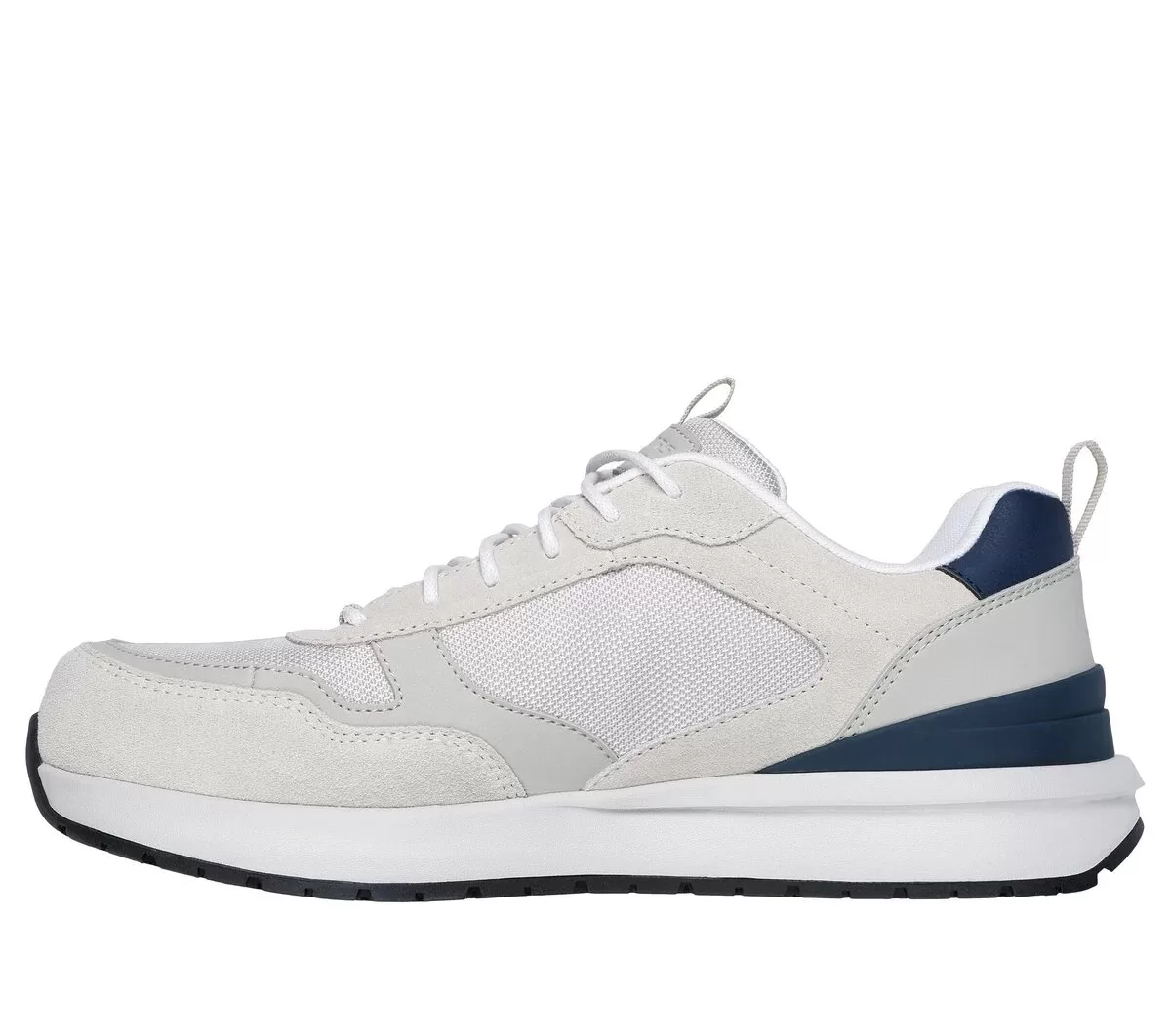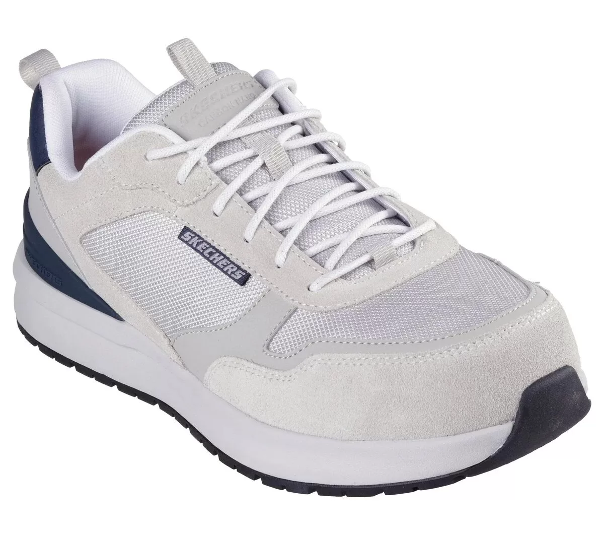 Stay protected and comfortable with sporty good looks wearing Skechers Work™: Joggernaut. This jogger inspired design features a lace-up leather, woven fabric, and synthetic upper with a cushioned Skechers Air-Cooled Memory Foam® insole, slip-resistant outsole, and carbon nano safety toe.