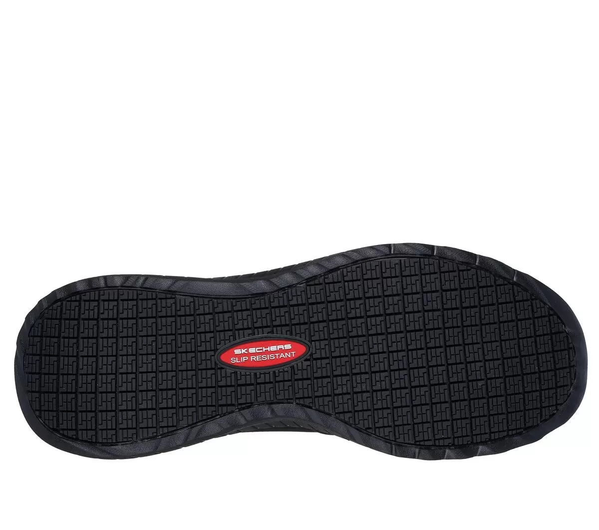 Stay safe and comfortable all day with the easy-wearing Skechers Work™ Relaxed Fit®: Squad Chaos SR – Urgran. This slip-resistant athletic style features a laceless water-repellent synthetic and mesh upper with a cushioned Skechers Air-Cooled Memory Foam® comfort insole.