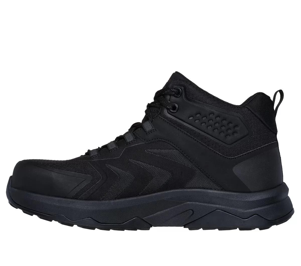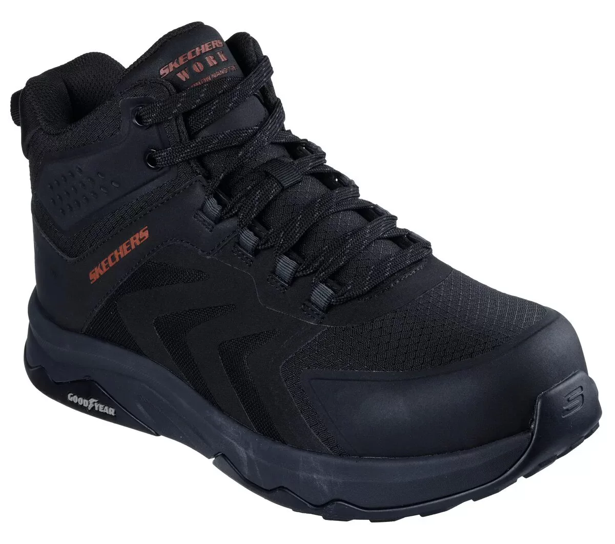 Gear up with comfort and protection wearing Skechers Work™: Speed-Flex Trekker. This slip-resistant high-top features a synthetic and mesh upper with a lace-up front, a nonmetallic carbon nano safety toe, Skechers Air-Cooled Memory Foam® insole, and Goodyear® Rubber Outsole.