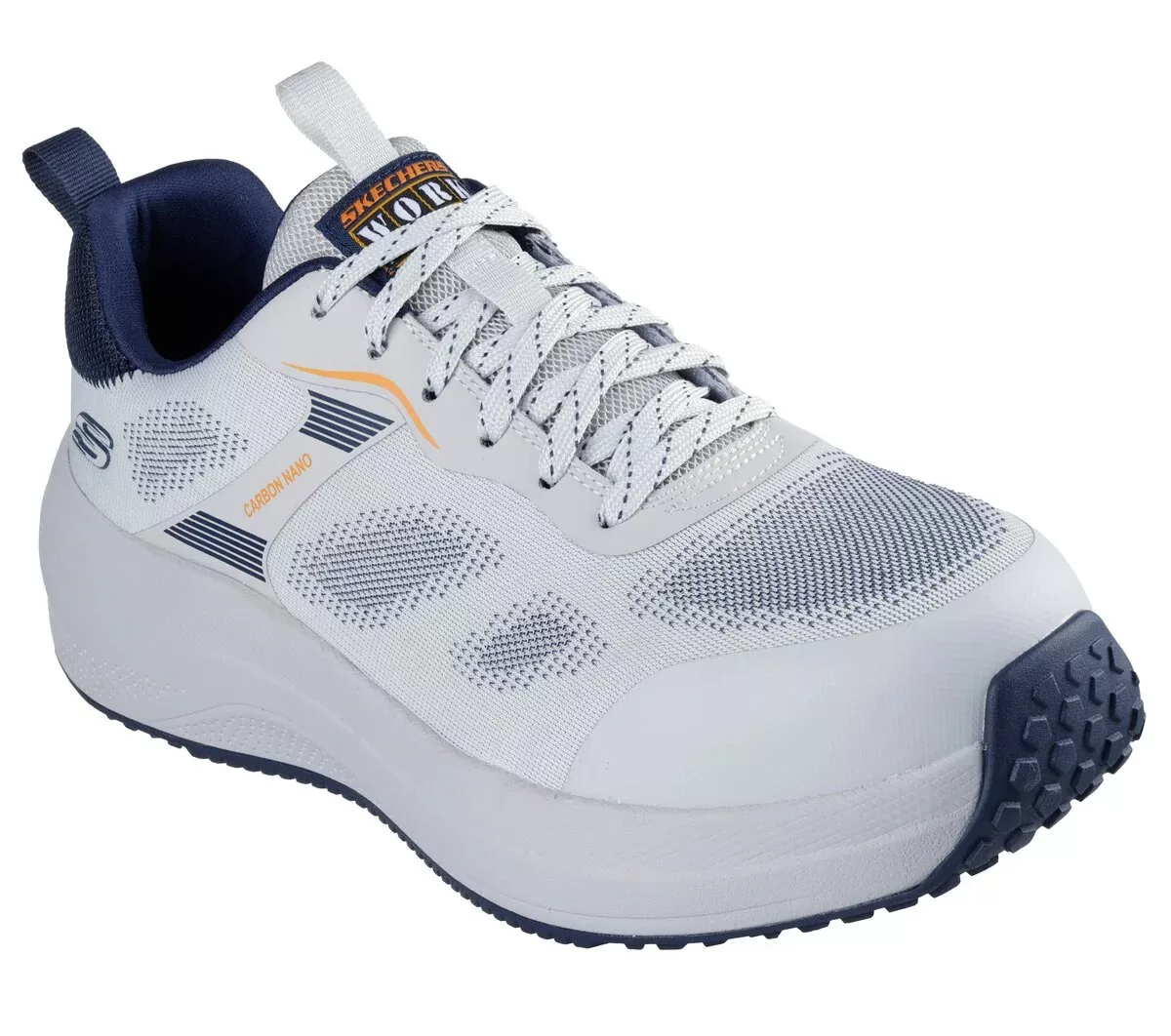 Surefooted comfort and safety deliver in Skechers Work™ Transporter Lite. This lace-up features a synthetic and knitted upper with a cushioned Skechers Air-Cooled Memory Foam® insole and a carbon nano safety toe.