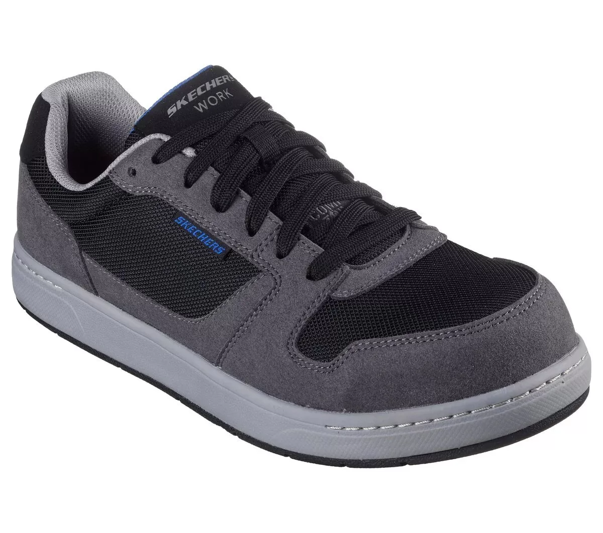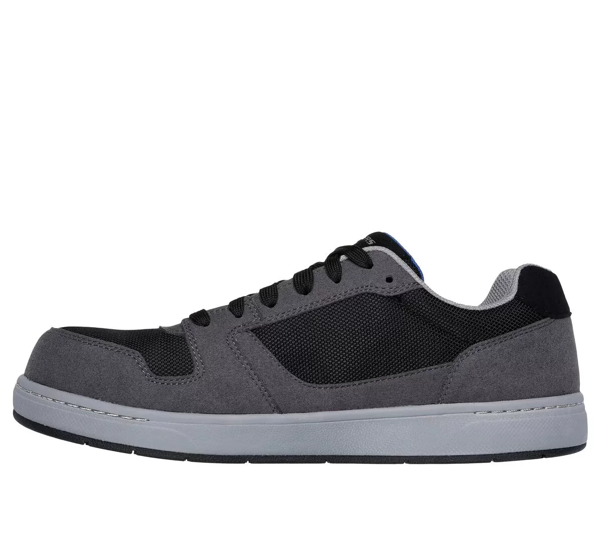 Sporty good looks, comfort and safety all mix in Skechers Work™: Watab – Jaggit CT. This slip-resistant work design features a lace-up mesh and synthetic upper, a nonmetallic composite safety toe, and a cushioned Skechers Air-Cooled Memory Foam® insole.