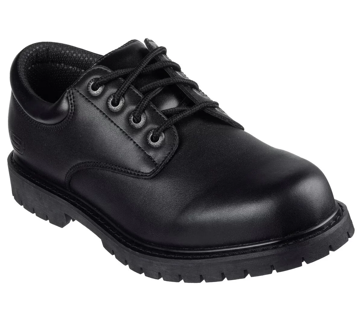Work smarter and more comfortably in Skechers Work™ Relaxed Fit®: Cottonwood – Cantix. This slip-resistant Oxford style design features a lace-up leather and synthetic upper with a cushioned Skechers Memory Foam™ insole.