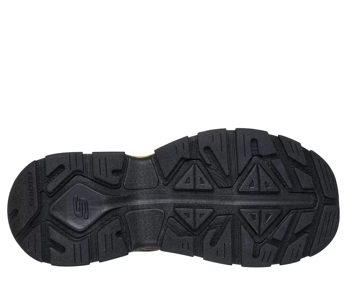 Rugged outdoor style meets modern comfort with Skechers Relaxed Fit®: Fairport – Bradley. This roomy closed-toe sandal features a mesh and synthetic overlay upper with fixed stretch laces, adjustable back strap, and a cushioned Luxe Foam® insole.
