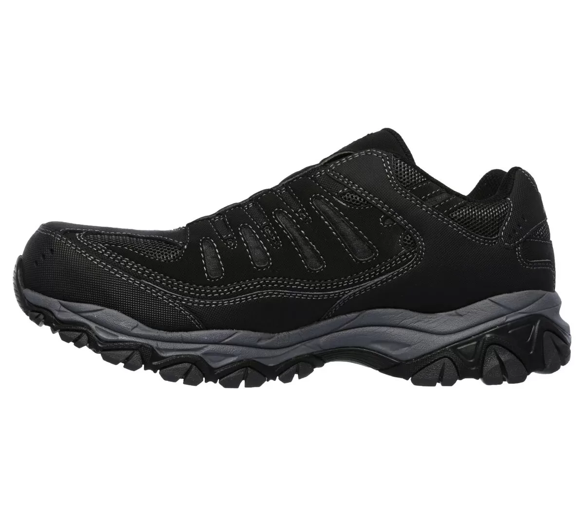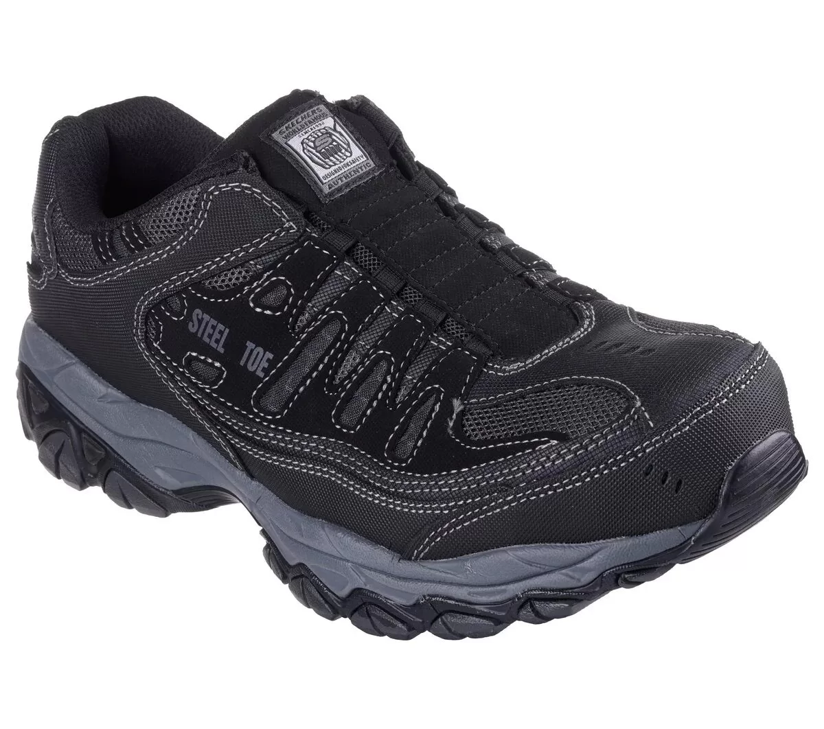 Take the easiest route to protection, comfort and style with Skechers Work™: Cankton – Ebbitt ST. This easy-on utility style features a durable leather, synthetic and mesh upper in a laceless fit, a Skechers Memory Foam™ insole, and a steel safety toe.