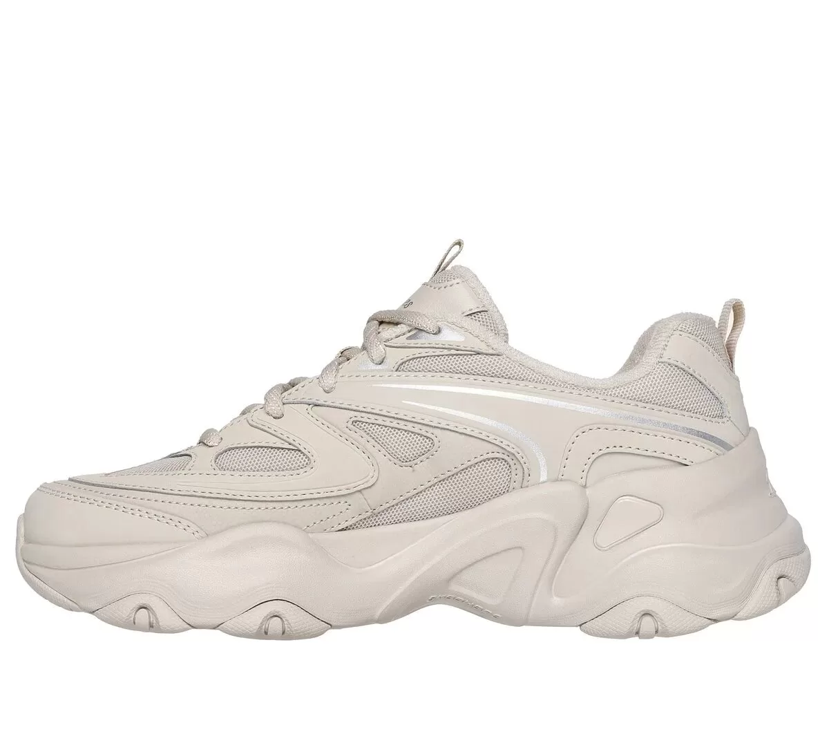 Sporty style and comfort combine in Skechers D’Lites® 5.0 – Breaking Rules. This casual lace-up sneaker features a mesh upper with leather overlays, Skechers Air-Cooled Memory Foam® insole, and a well-cushioned midsole.