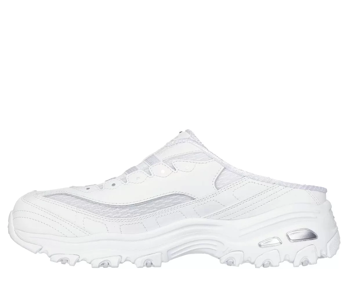 Iconic style meets supreme comfort in Skechers D’Lites – Nostalgic Breeze. This breathable open-back mule sneaker features a mesh upper with leather and duraleather overlays plus a cushioned Skechers Air-Cooled Memory Foam® footbed.