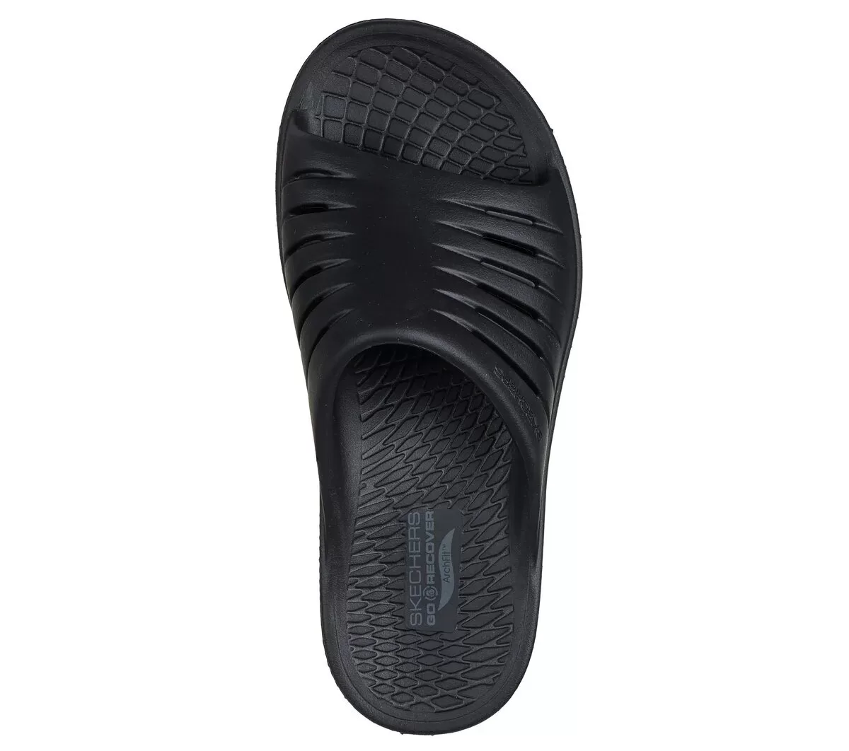 Relax in specialized comfort and style wearing Skechers GO RECOVER® Refresh. This athletic recovery slide sandal has been granted the APMA Seal of Acceptance and features a synthetic upper with linear perforations and premium HYPER BURST® foam with Arch Fit® support that redistributes pressure for impact reduction.