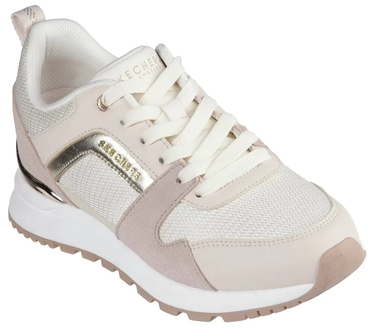 Add a stylish classic to your wardrobe rotation with Skechers Street™ Runway – Posh Gal. This Skechers Fashion Fit® sneaker features a lace-up suede and duraleather upper with metallic trim, and a cushioned Skechers Air-Cooled Memory Foam® insole.