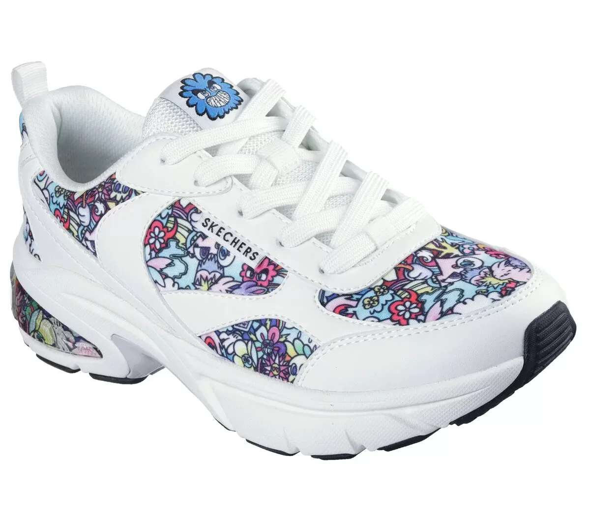 Get drawn into the imaginative world of Skechers Street™ x Vexx with our latest collaboration! Vexx has made Skechers his personal canvas, fusing his signature ‘doodles’ seamlessly with our iconic footwear and apparel to create a collection bursting with vibrant colors and playful imagery. The Skechers Street™ Shadow – Vexx Doodles fashion sneaker features a mesh upper with Vexx’s signature moji ‘doodles’ and duraleather overlays, a lace-up front, and a Skechers Air-Cooled Memory Foam® insole.