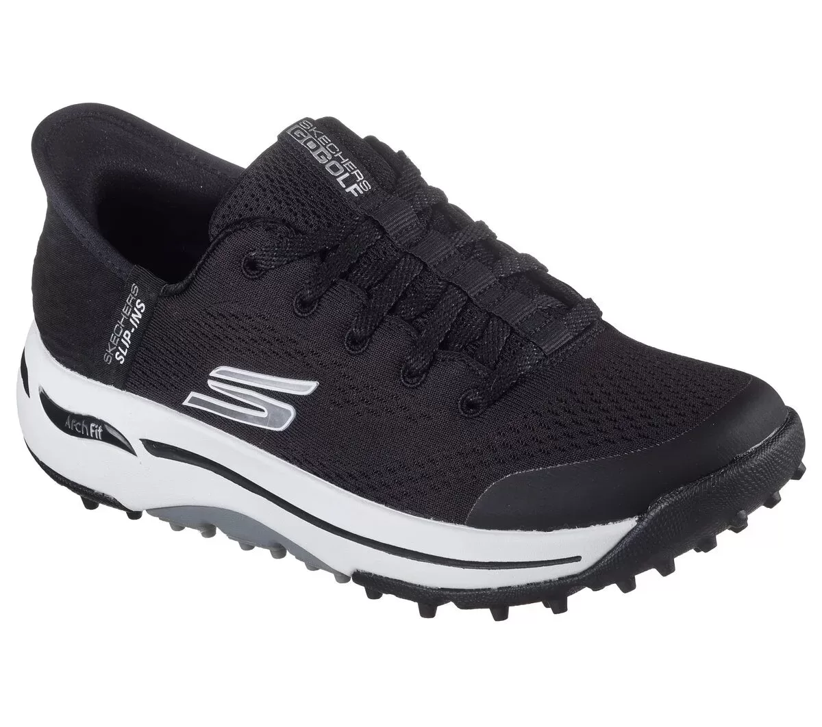 Handle the course with the best in comfort technologies wearing Skechers Hands Free Slip-ins®: GO GOLF® Arch Fit® – Slip-ins. Designed with our exclusive Heel Pillow™, this spikeless golf slip-on features a water-repellent engineered mesh and synthetic upper with adjustable laces, a removable Arch Fit® insole, and Goodyear® Performance Outsole.