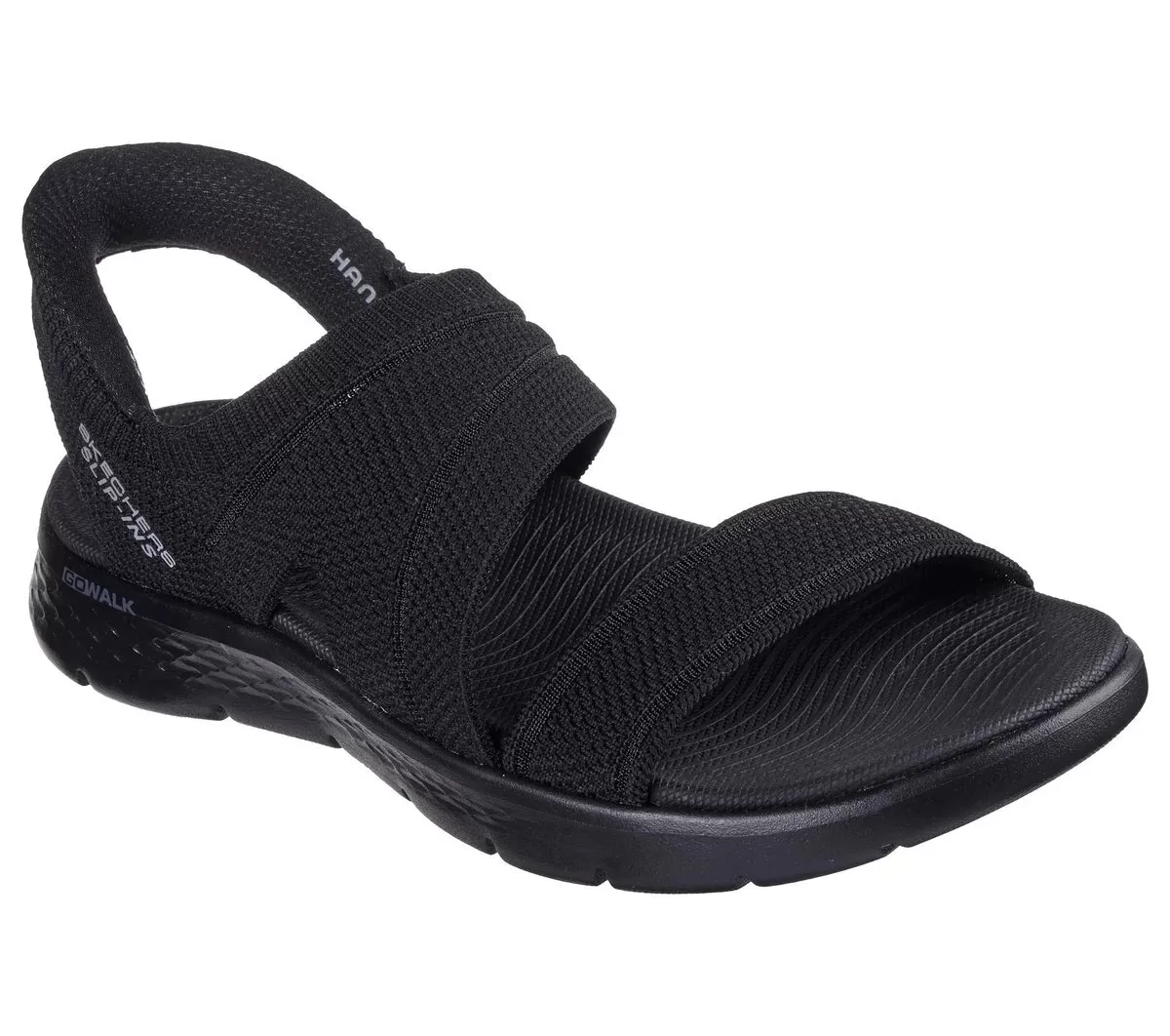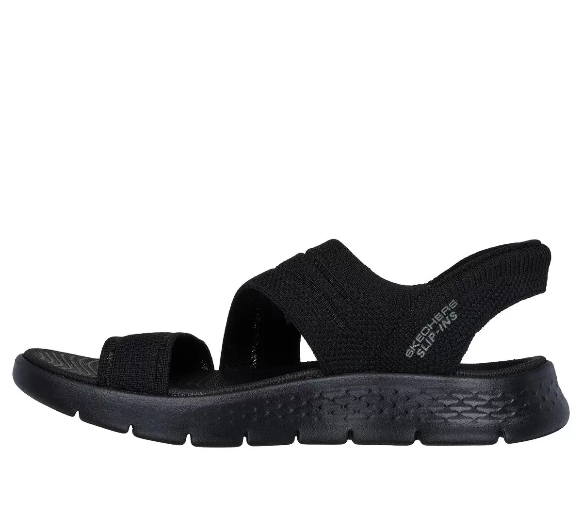 Experience an effortless way to wear your favorite sport sandal with Skechers Hands Free Slip-ins®: GO WALK Flex™ Sandal – Enticing. Designed with our Heel Pillow™, this strappy slip-on sandal features a knitted upper with a Skechers Hands Free Slip-ins® back heel, contoured Goga Mat® footbed and lightweight ULTRA GO® cushioning.