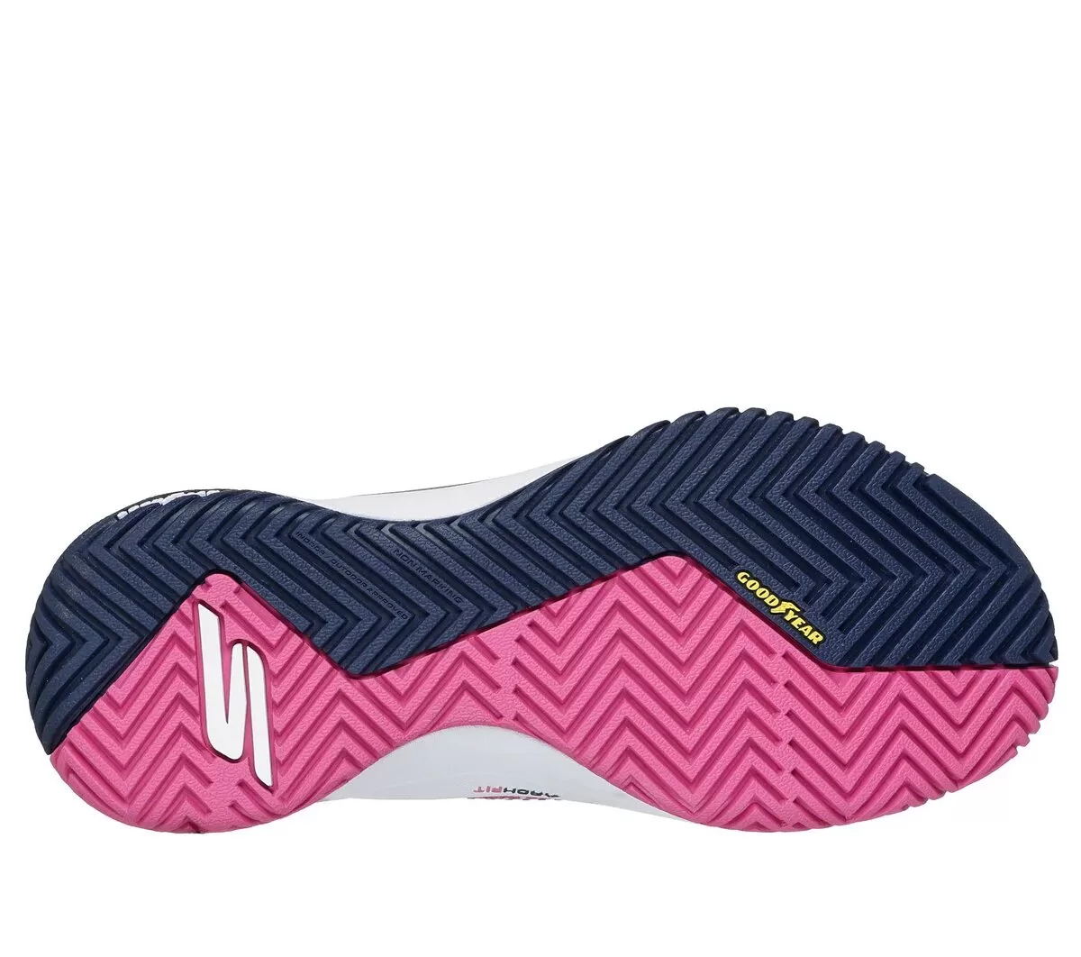 Take your game to the next level with Skechers Hands Free Slip-ins®: Viper Court Elite. Created specifically for the competitive Pickleball athlete, this slip-on court shoe has been granted the APMA Seal of Acceptance and features our exclusive hands-free Heel Pillow™ with an athletic mesh and screen print upper, removable Arch Fit® insole, and lightweight ECO FLIGHT™ cushioning. The design is complete with a Goodyear® Rubber Performance Outsole built for increased durability and control on the Pickleball court surface.