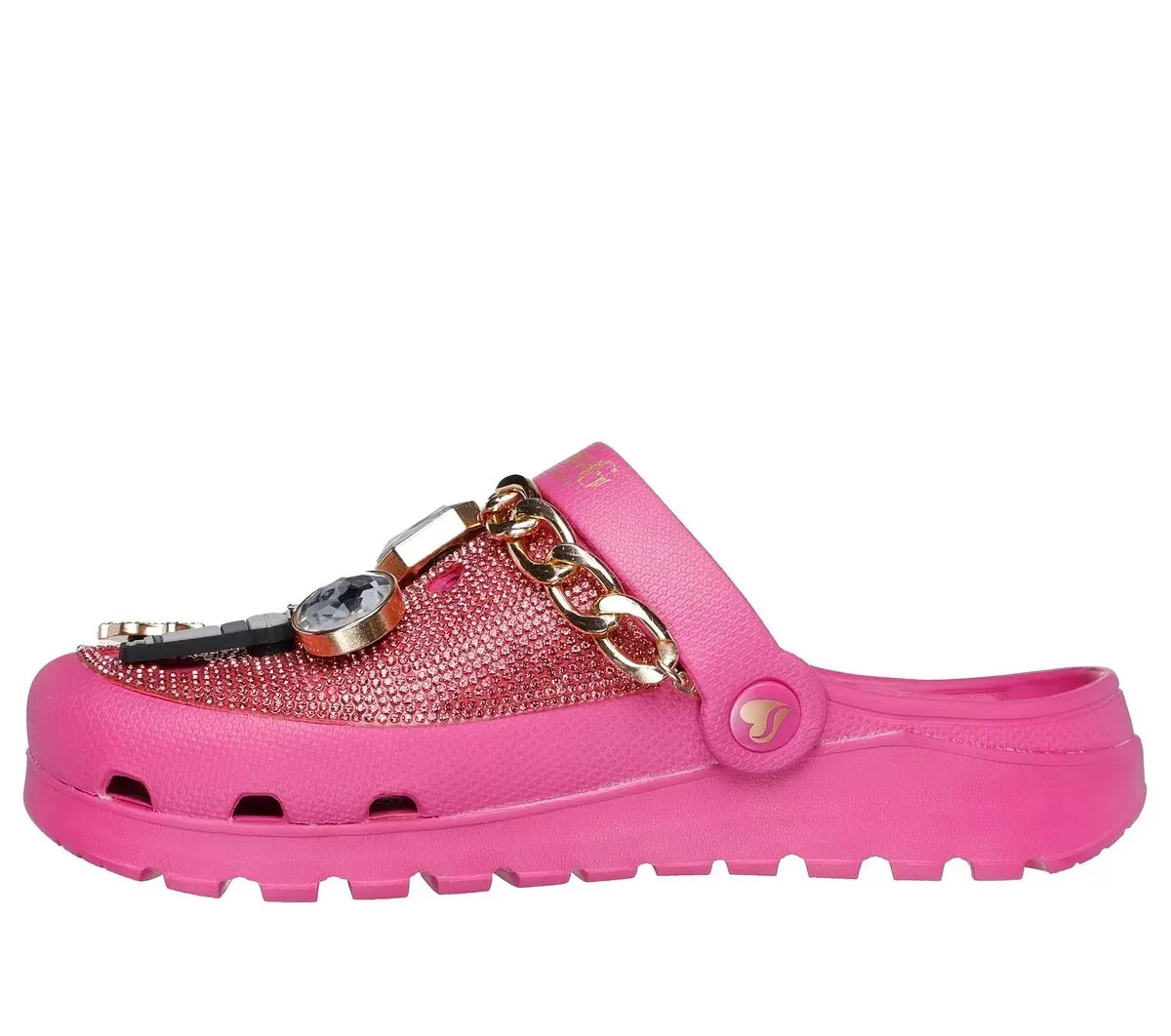 Haute Drop: Rep the D-O-Double-G in glammed up comfort wearing Skechers x Snoop Dogg: Arch Fit® Footsteps – Rolling N Gold. This head-turning fashion clog features a rhinestone-embellished EVA upper with gold chain detail, removable Snoop-themed charms, and a contoured Arch Fit® footbed.