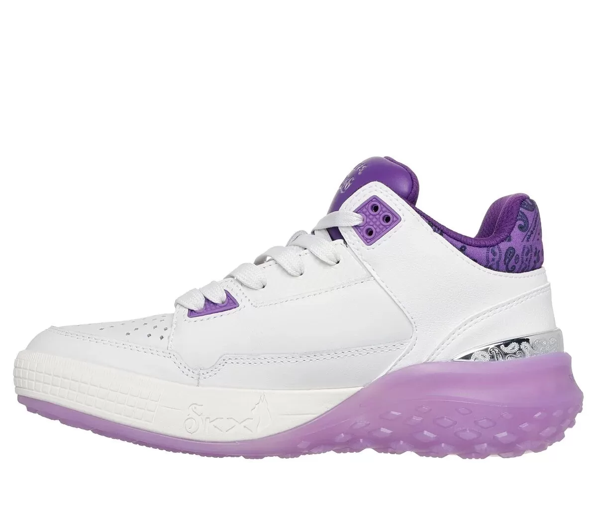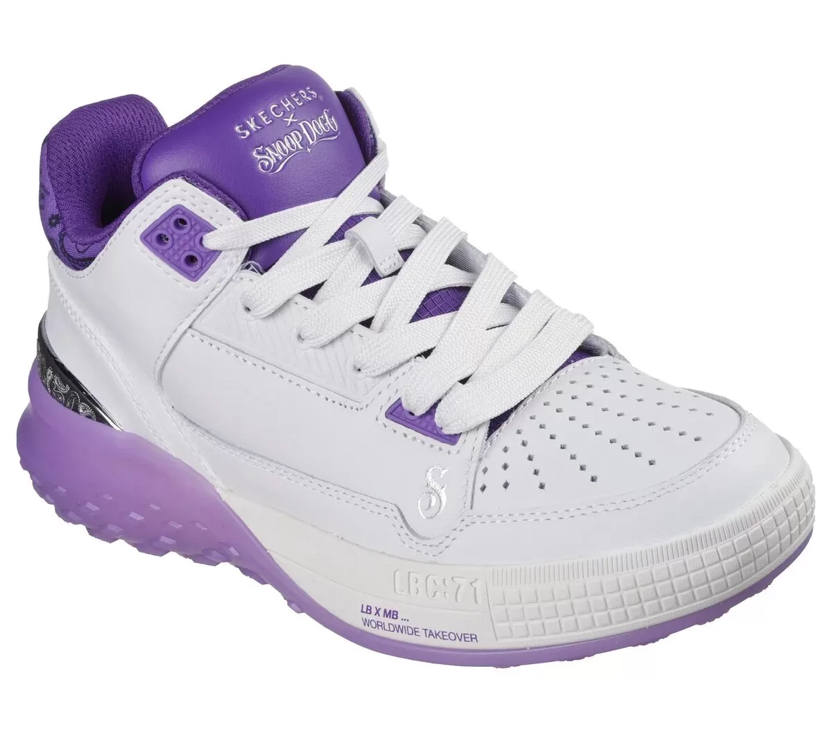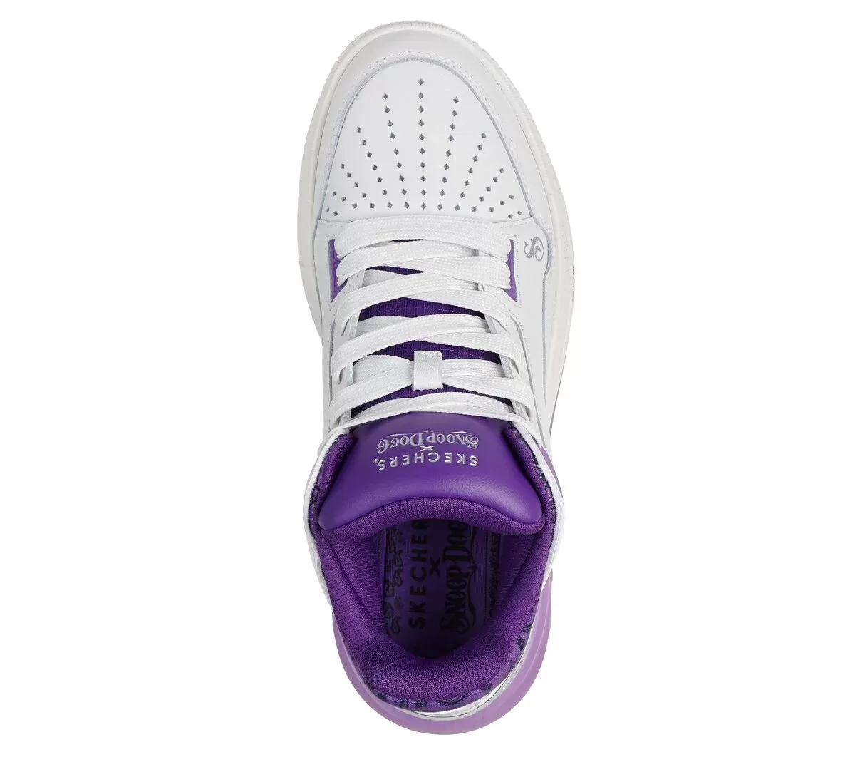 Dropping like it’s hot: Skechers x Snoop Dogg: Sizzle – Buckets OG. This fly and fresh mid-top court style is as unique as the D-O-Double G himself. Featuring a smooth and perforated premium leather upper with paisley print collar detail, metallic heel trim, and an oh-so-cushy Skechers Air-Cooled Memory Foam® insole.