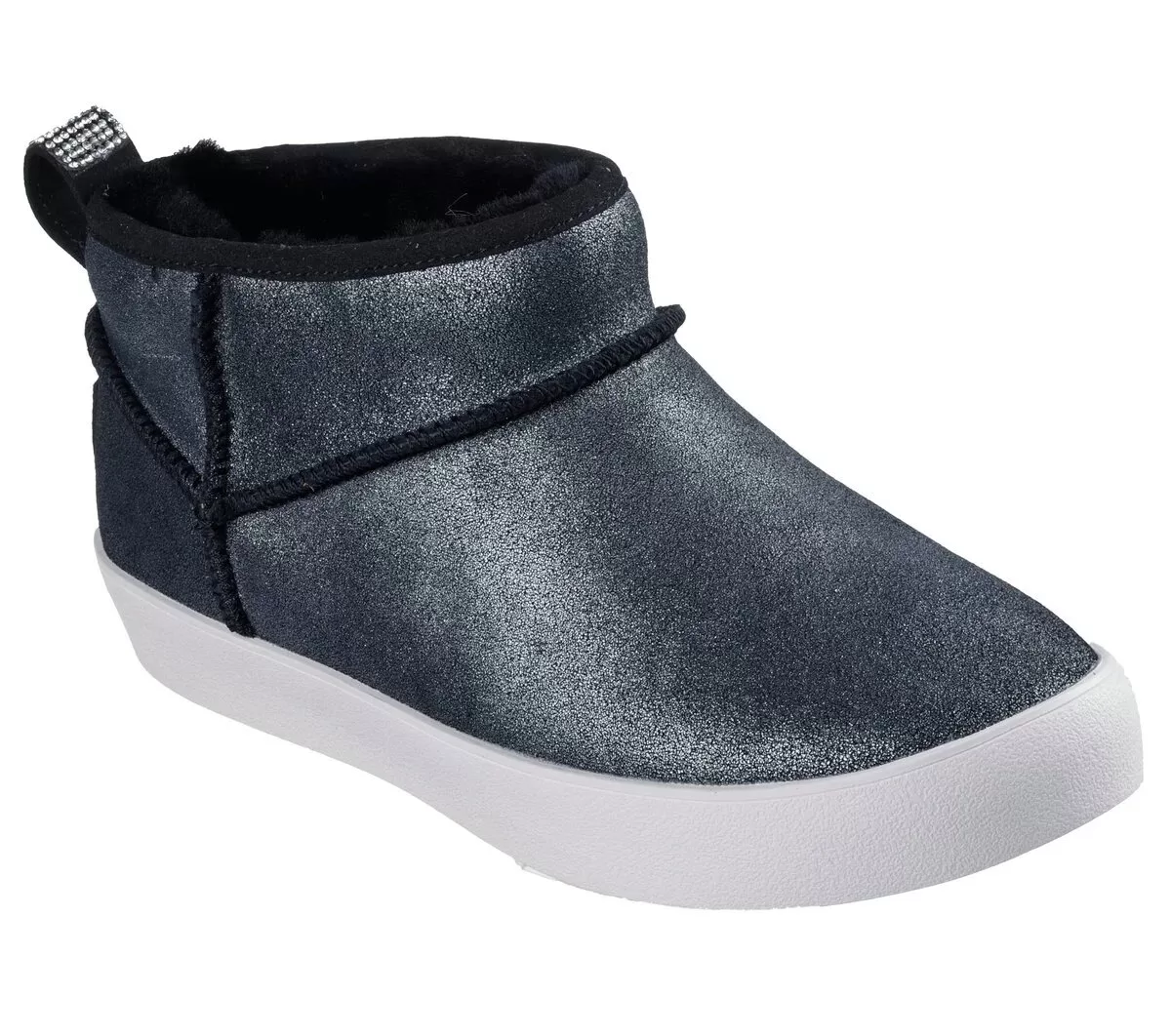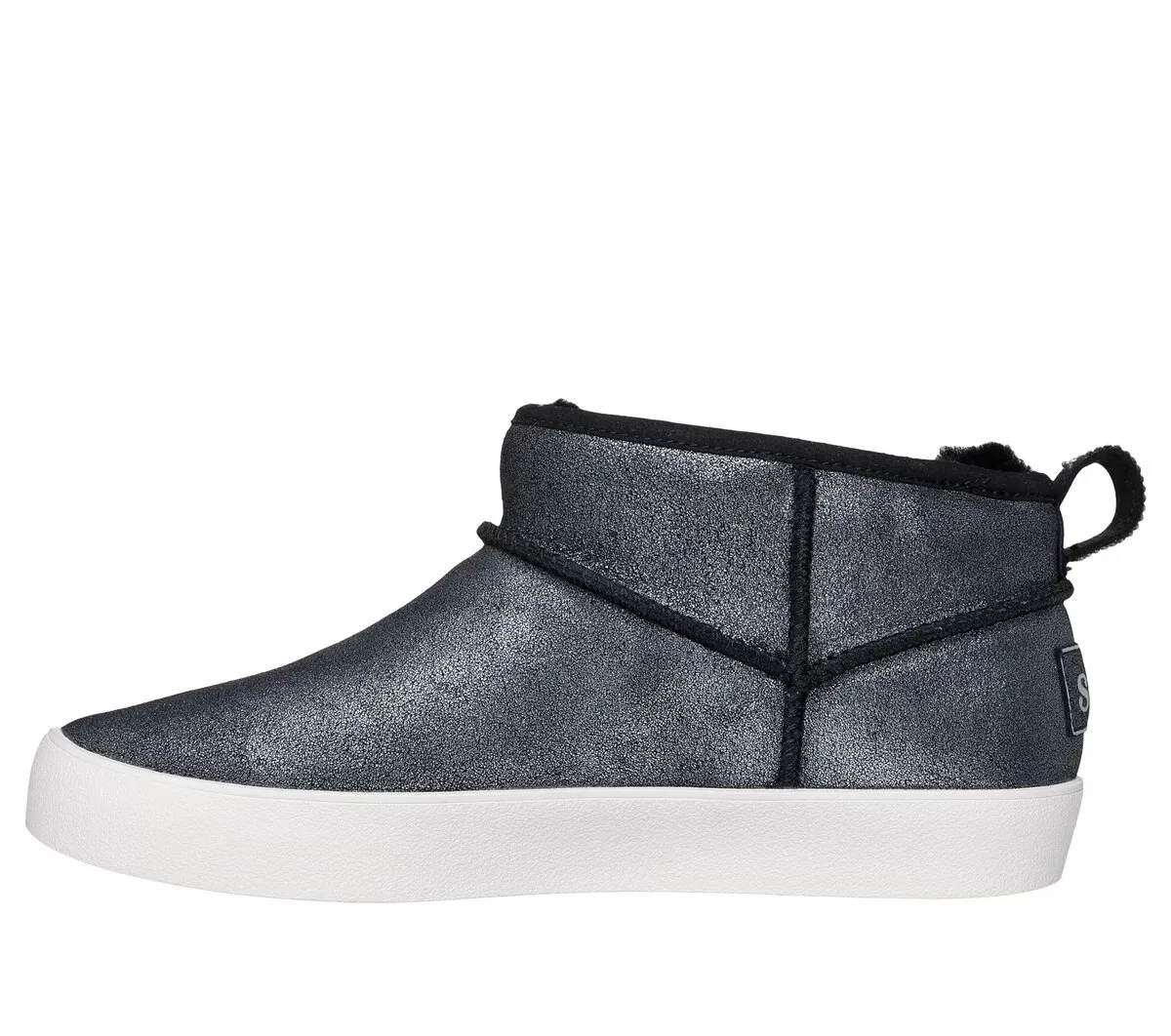 Find your star power style with uncompromising comfort wearing Skechers Strand Star – Warm Shimmer. This fashion sneaker bootie features a pull-on metallic suede upper, a hidden wedge court-style midsole, and a Skechers Air-Cooled Memory Foam® cushioned insole.