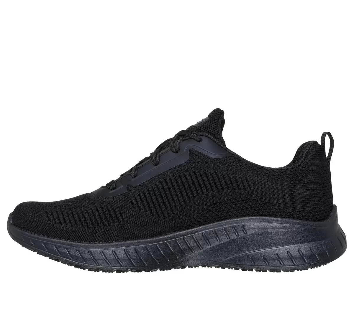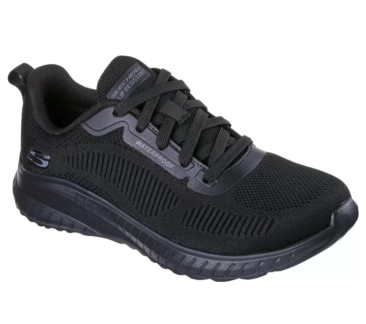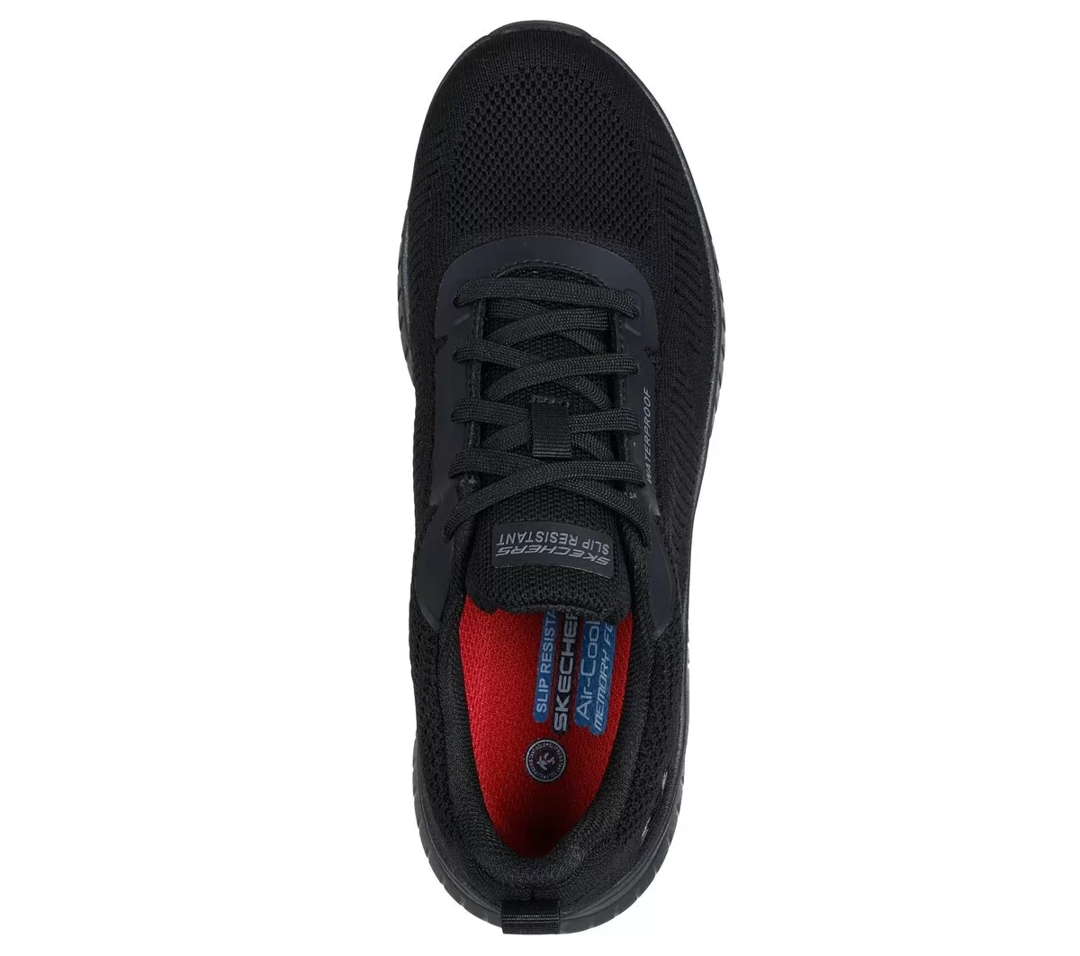 Stay safe and comfortable all day with Skechers Work™: Squad Chaos SR – Awoa. This waterproof athletic style features a mesh and synthetic upper with a lace-up front, a slip-resistant outsole, and a cushioned Skechers Air-Cooled Memory Foam® comfort insole.