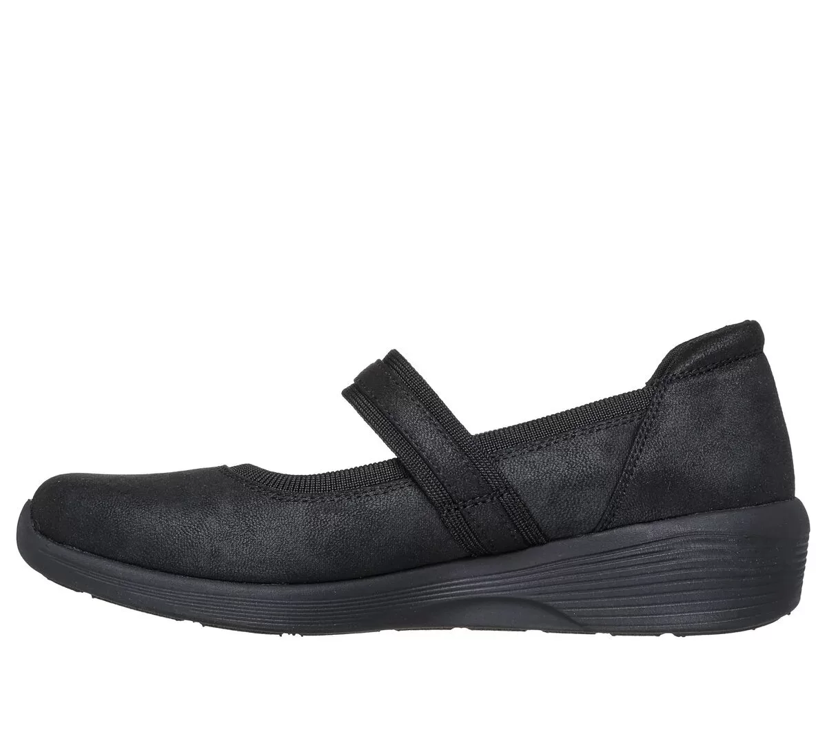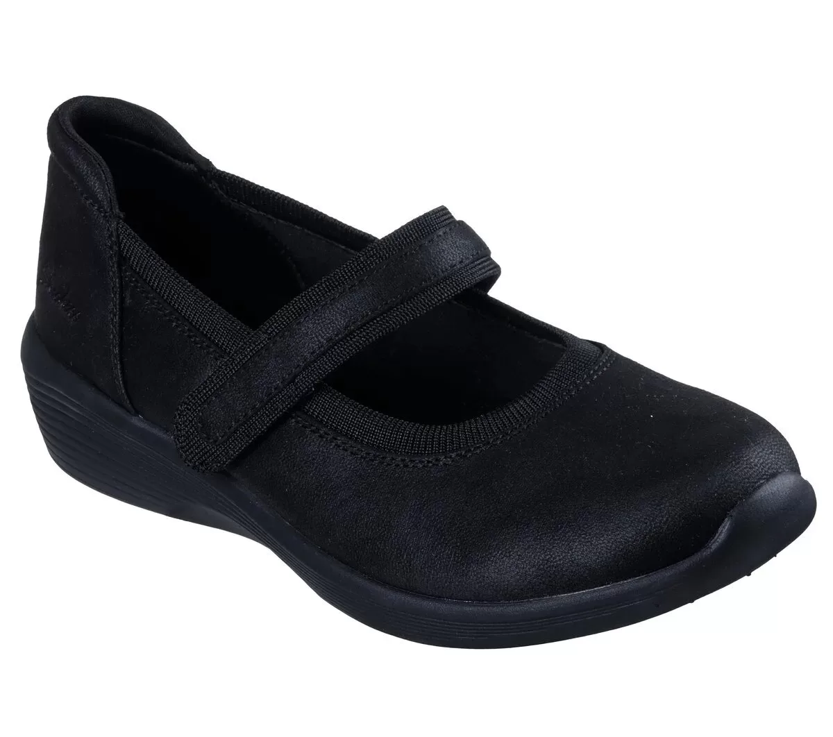 Experience casual all-day comfort in Skechers Arya – Always Rising. This vegan Mary Jane style features a Stretch Fit® microleather upper with an adjustable instep strap and a cushioned Skechers Air-Cooled Memory Foam® comfort insole.