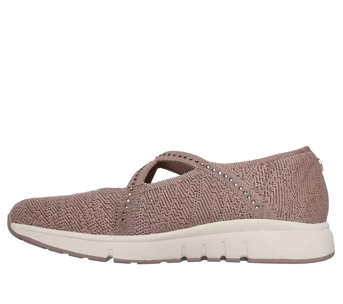 Celebrated lifestyle expert, Martha Stewart, delivers her one-of-a-kind touch to Skechers in this spirited collaboration. Lounge about in laid-back comfort wearing Martha Stewart x Skechers Arch Fit® Living – Meadow Walks. This Stretch Fit® Mary Jane style features a recycled knit upper with rhinestone embellishments and a removable Arch Fit® insole.