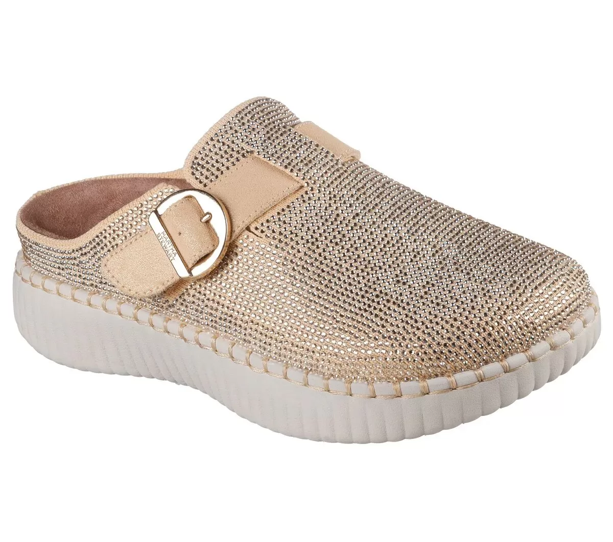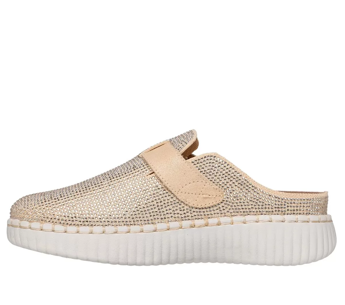 Celebrated lifestyle expert, Martha Stewart, delivers her one-of-a-kind touch to Skechers in this spirited collaboration. Ease into luxurious comfort that shines with Martha Stewart x Skechers: Arch Fit® Topangah. This open-back comfort clog features a rhinestone-embellished woven upper with a buckled instep strap , a supportive Arch Fit® footbed with contoured Luxe Foam®.