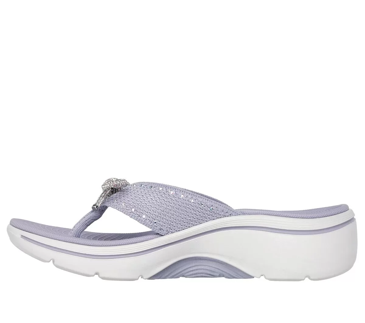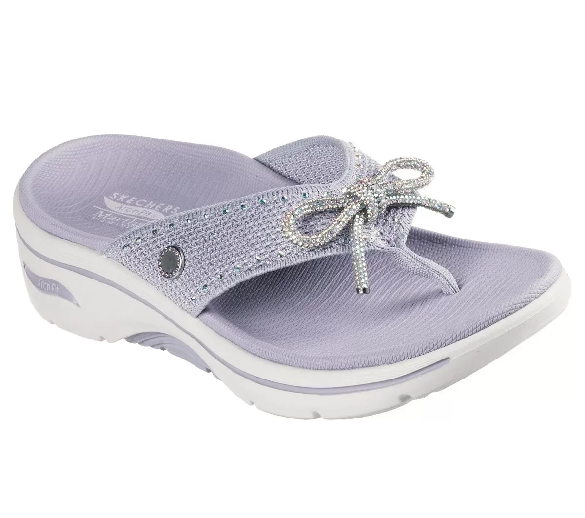Celebrated lifestyle expert, Martha Stewart, delivers her one-of-a-kind touch to Skechers in this spirited collaboration. Ease back with style and summery comfort in Martha Stewart x Skechers: GO WALK® Arch Fit® 2.0 Sandal – Glimmer. This Arch Fit® sandal has been granted the APMA Seal of Acceptance and features a 3-point knit upper with a rhinestone embellished bow, contoured Goga Mat® footbed, ULTRA GO® cushioning, and Comfort Pillar Technology® for added support.
