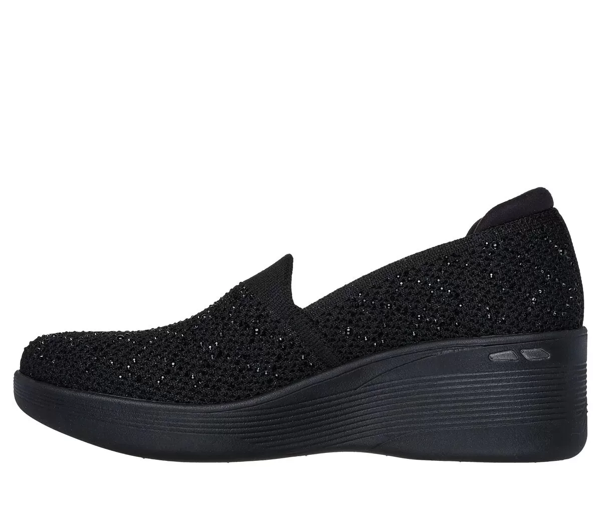 Celebrated lifestyle expert, Martha Stewart, delivers her one-of-a-kind touch to Skechers in this spirited collaboration. Shine on in fashionable flair wearing Martha Stewart x Skechers: Pier-Lite – My Reflection. This casual fashion wedge features a Stretch Fit® mesh knit upper with rhinestone embellishments, a wedge midsole and a Skechers Air-Cooled Memory Foam® insole.