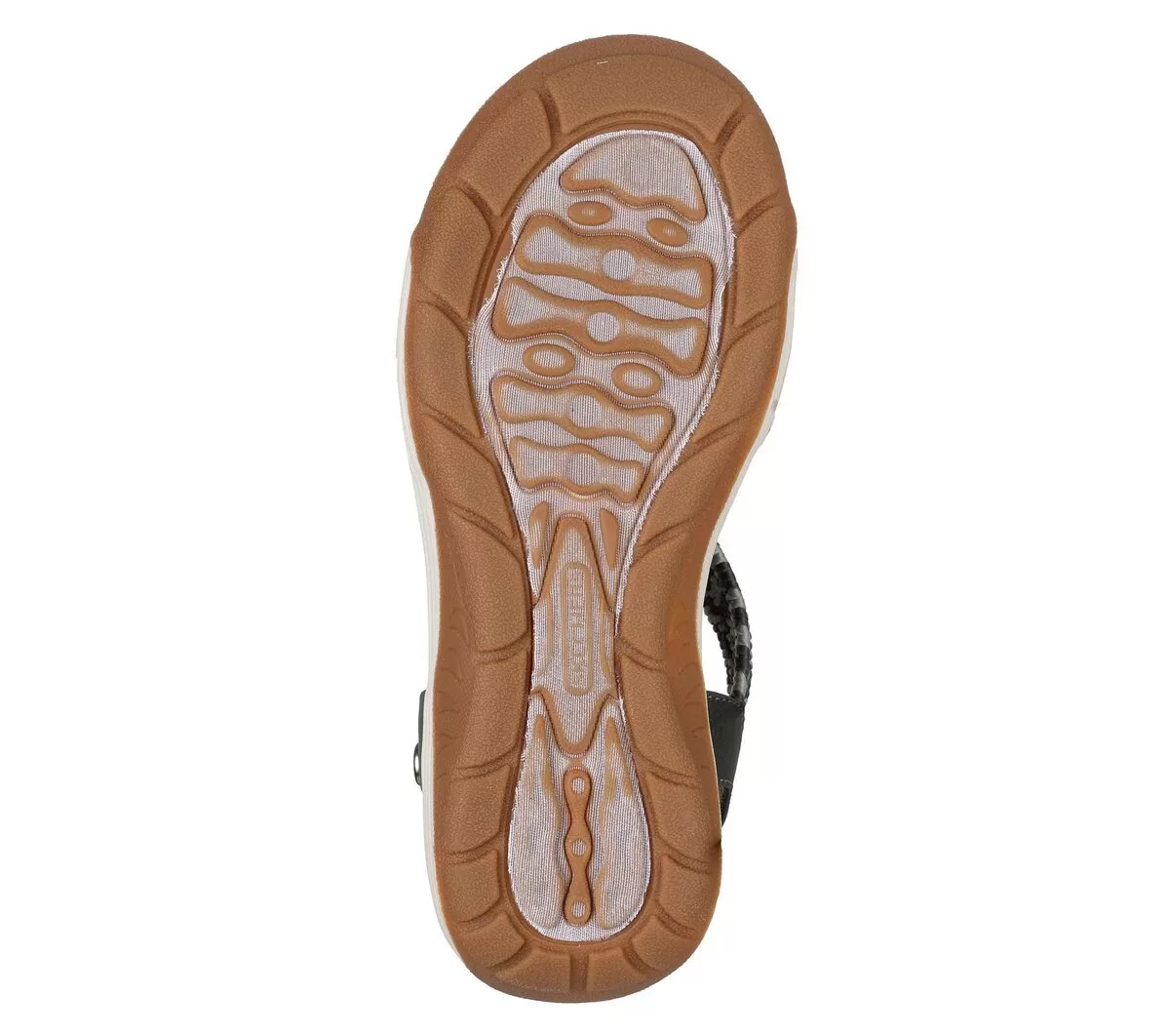 Celebrated lifestyle expert, Martha Stewart, delivers her one-of-a-kind touch to Skechers in this classically chic collaboration. Ease back with style and summery comfort in Martha Stewart x Skechers: Reggae Cup – Coastal Trail. This vegan strappy sandal features a two-tone woven upper with an adjustable slingback strap closure and a supportive Arch Comfort® footbed.