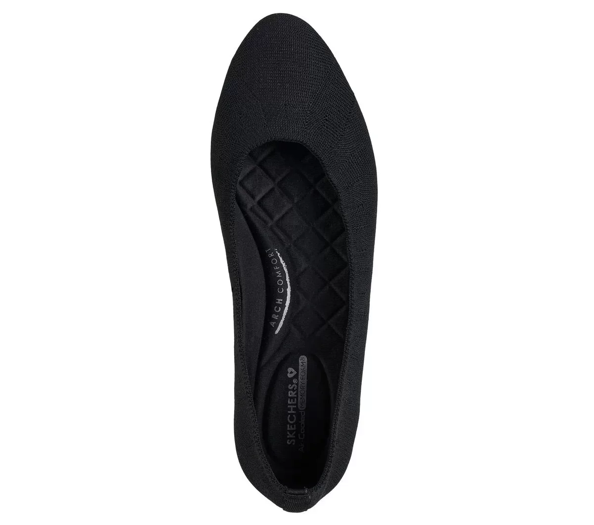 Gorgeous textured style becomes an eternal favorite in Skechers Cleo® Style. Designed with recycled materials, this Stretch Fit® vegan skimmer features a knit upper with scalloped collar trim and a cushioned Skechers Air-Cooled Memory Foam® insole. Our Planet Matters®: Good for your feet. Good for the world.®