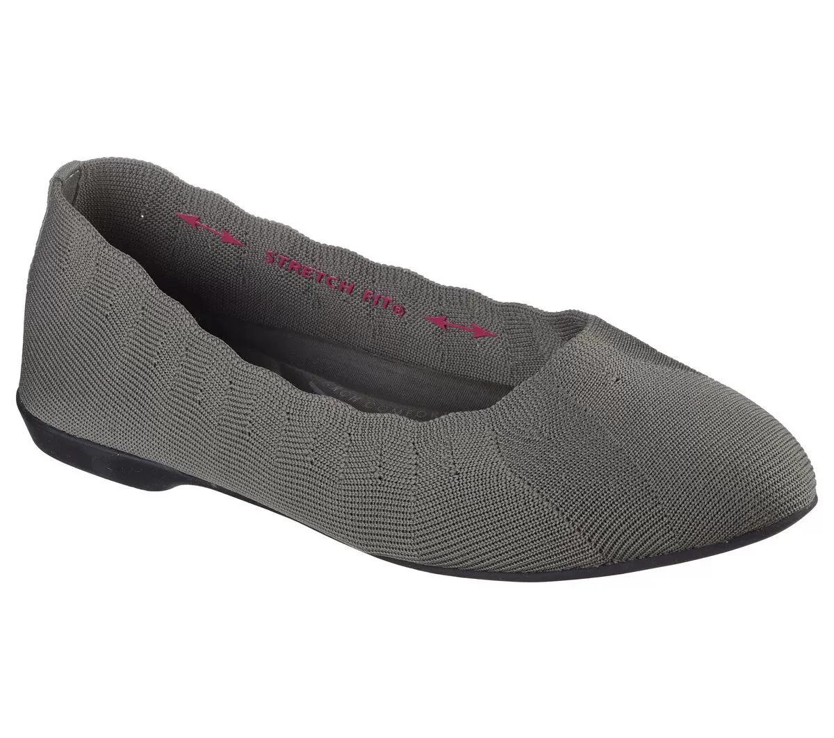 Gorgeous textured style becomes an eternal favorite in Skechers Cleo® Style. Designed with recycled materials, this Stretch Fit® vegan skimmer features a knit upper with scalloped collar trim and a cushioned Skechers Air-Cooled Memory Foam® insole. Our Planet Matters®: Good for your feet. Good for the world.®
