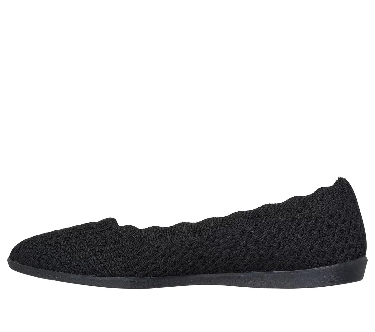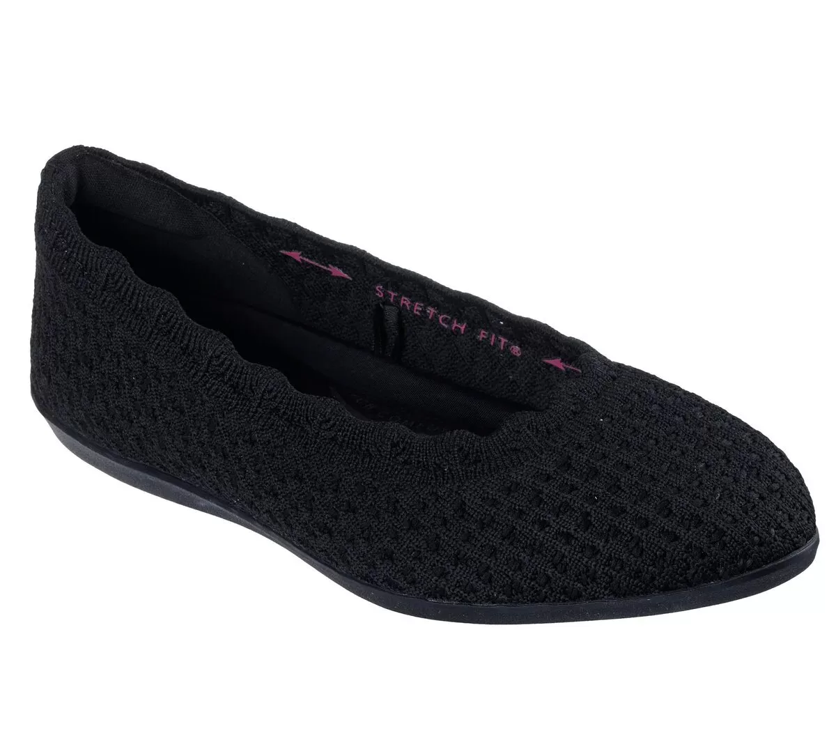 Our Planet Matters. Versatile style meets earth-friendly comfort with Skechers Cleo® Walk. Designed with recycled materials, this vegan Stretch Fit® skimmer features a recycled knit upper with scalloped trim and a cushioned Skechers Air-Cooled Memory Foam® insole with Arch Comfort™ support. Our Planet Matters®: Good for your feet. Good for the world.®
