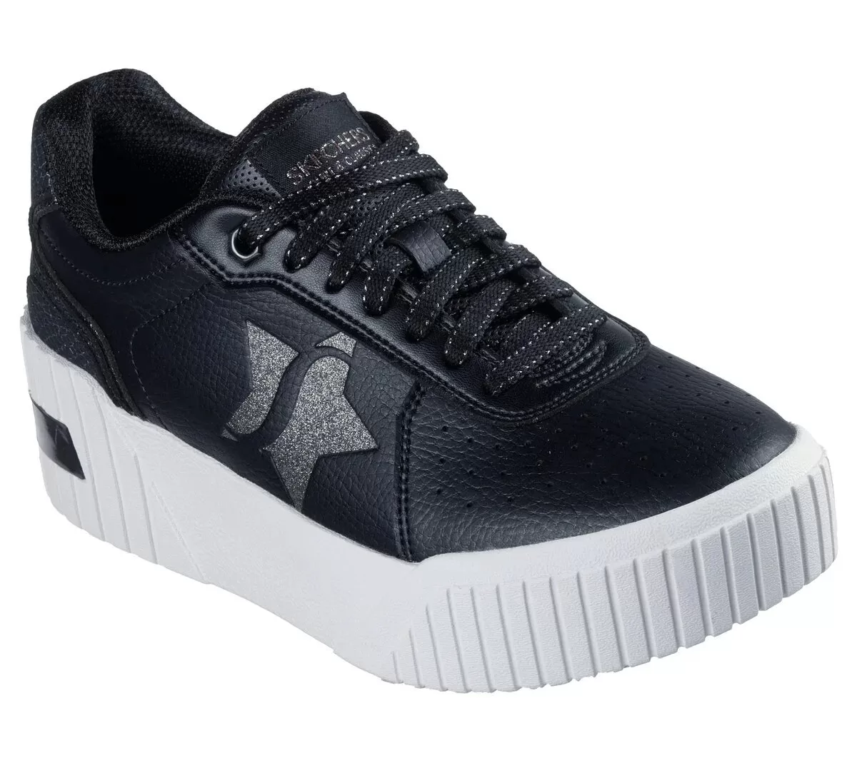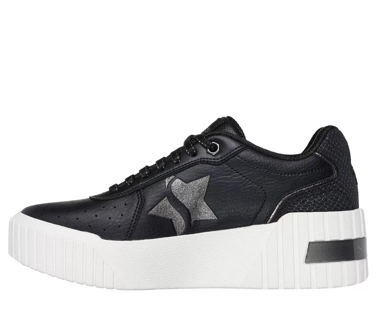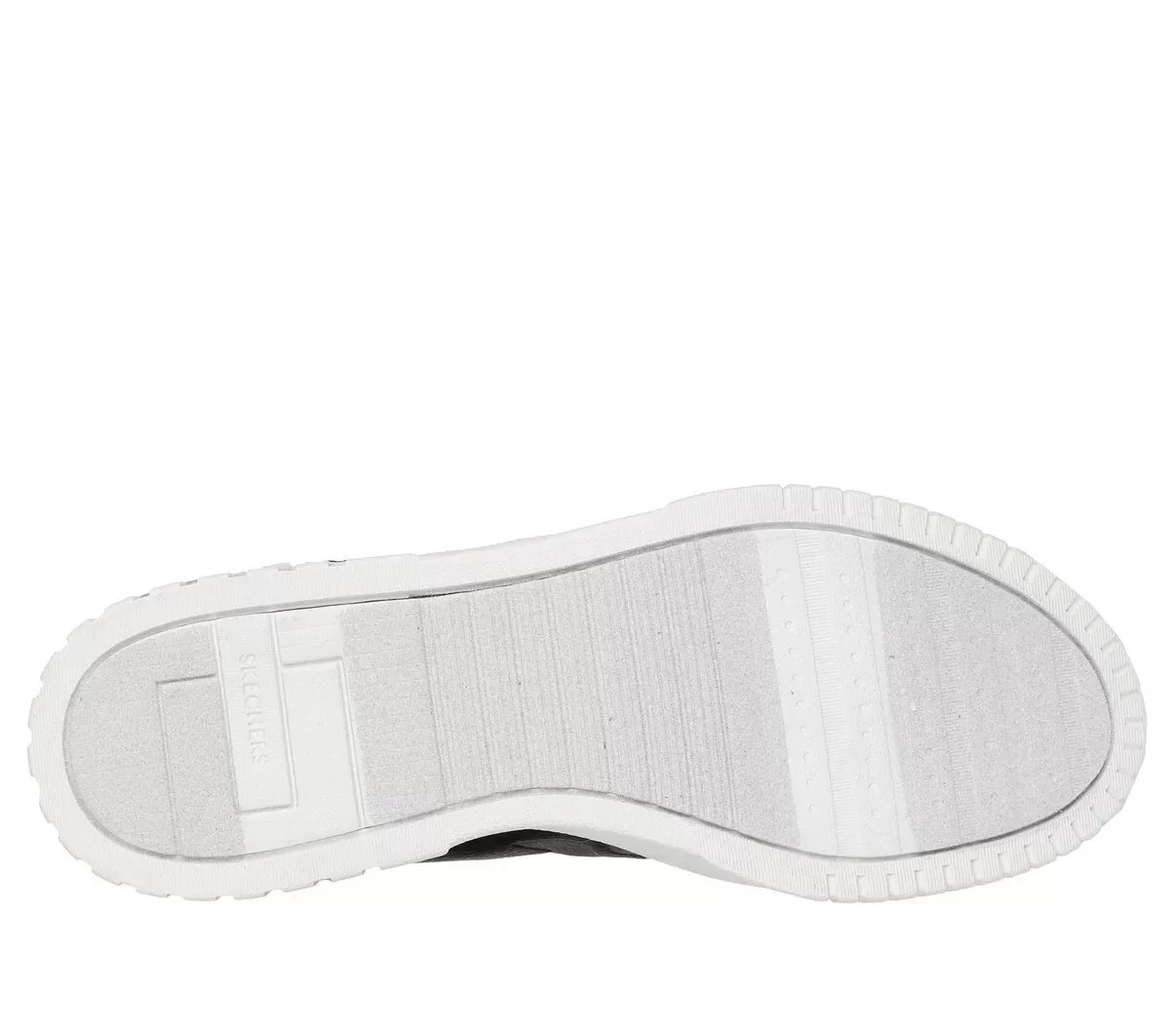 Enjoy classic court-style looks with Skechers Jumbo Jade – Lifted Chic. This low-top lace-up features a duraleather upper with reptile textured details and metallic overlays, plus a cushioned Skechers Air-Cooled Memory Foam® comfort insole.