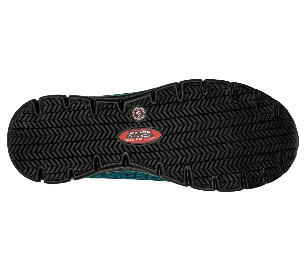 Show your personal style in protective comfort with Skechers Work™: Sure Track – Saivy. This lace-up features a durable woven fabric and synthetic upper with a cushioned Skechers Air-Cooled Memory Foam® insole, slip-resistant outsole and a lightweight composite safety toe.
