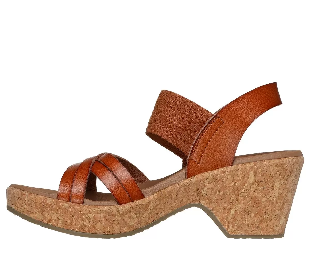 Diamond style comfort and looks combine in Skechers Cali® Brystol – Night Skies. This strappy wedge sandal features a synthetic upper with a pull-on gore strap, and a cushioned Luxe Foam® footbed.