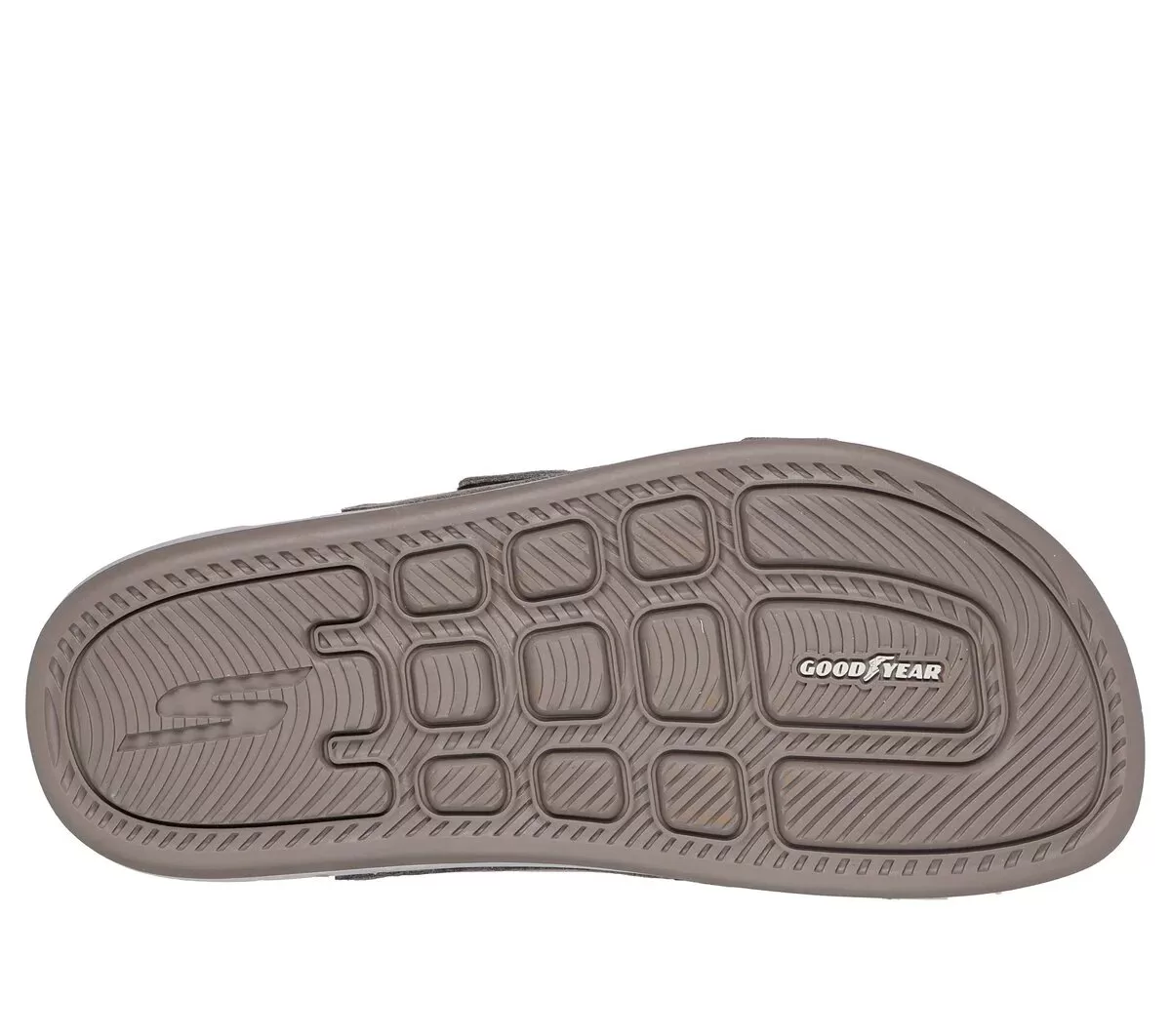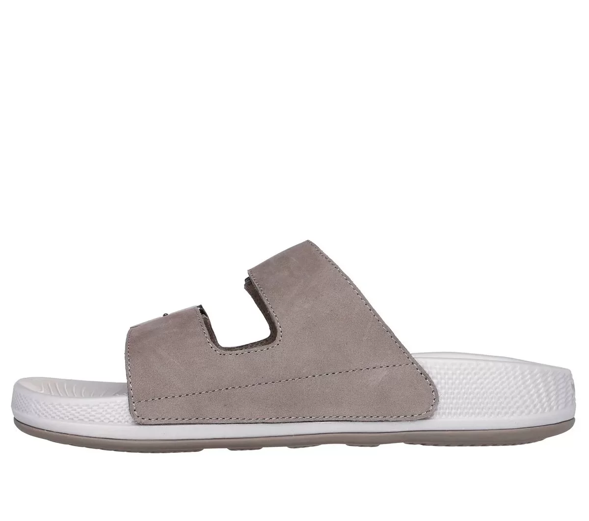 Experience effortless comfort and style with the Skechers Hyper Slide – Vida. This dual buckle slide sandal features a leather upper with a HYPER BURST® cushioned midsole and a Goodyear® Rubber Outsole.