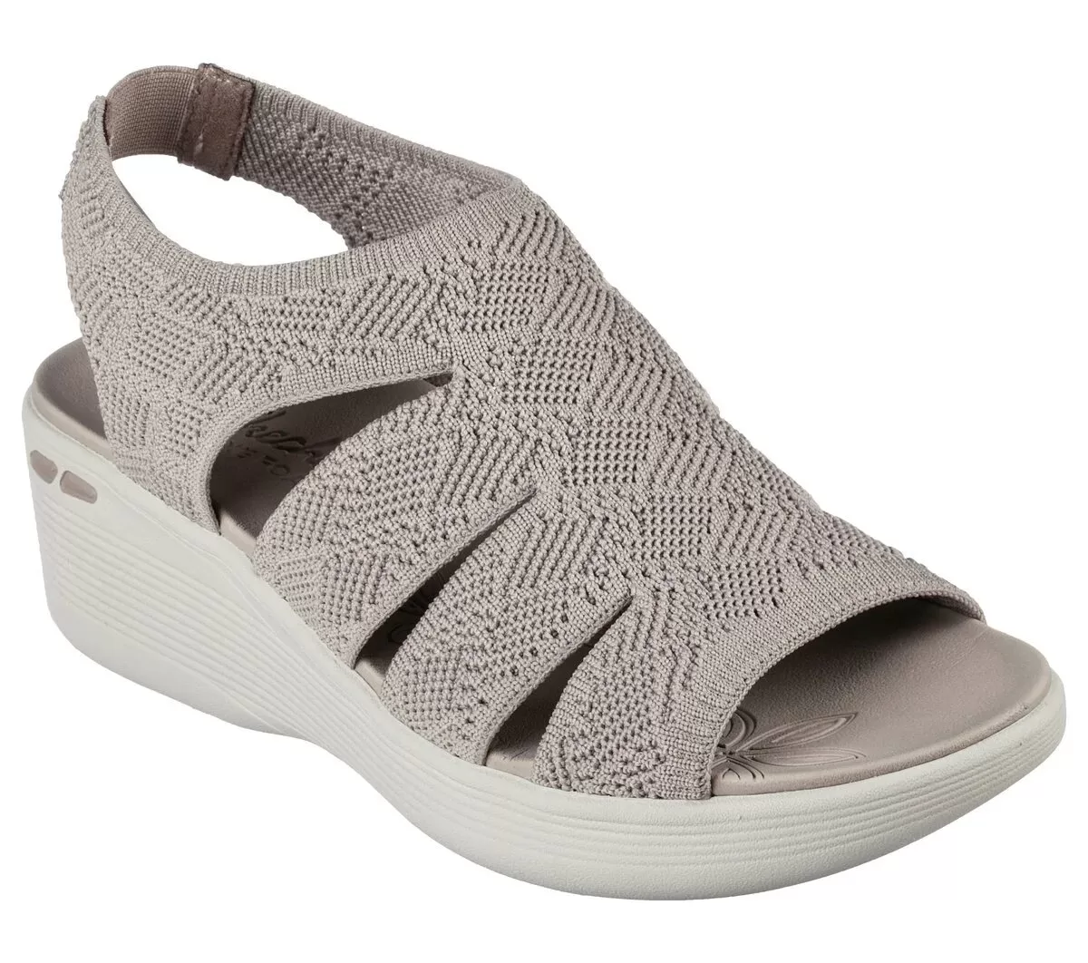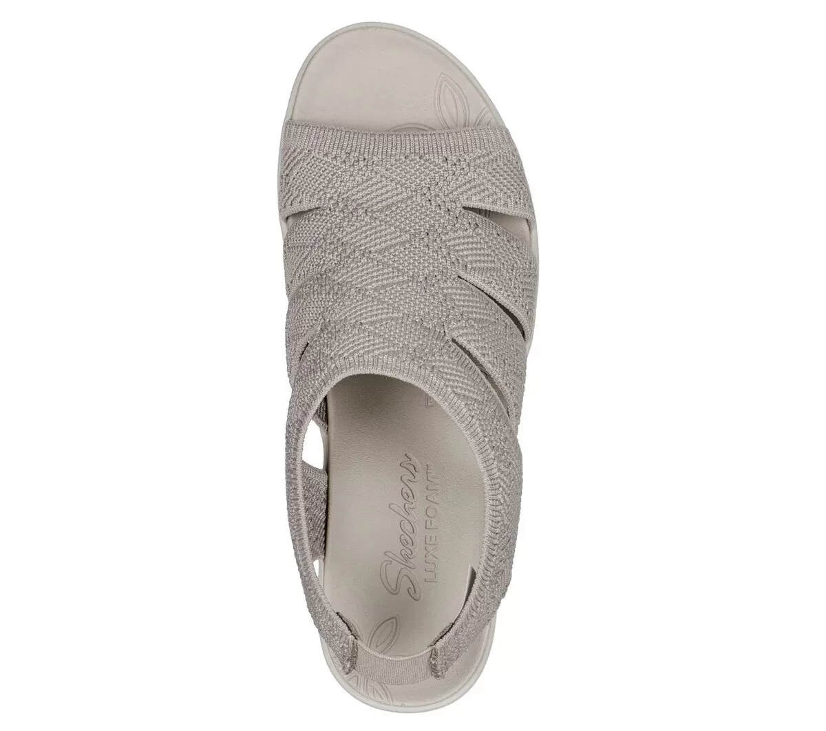 Step into the season with easygoing comfort in Skechers Pier-Lite – Memory Maker. This wedge sandal features a crochet cut out knit upper with a sling back and a Luxe Foam® footbed.