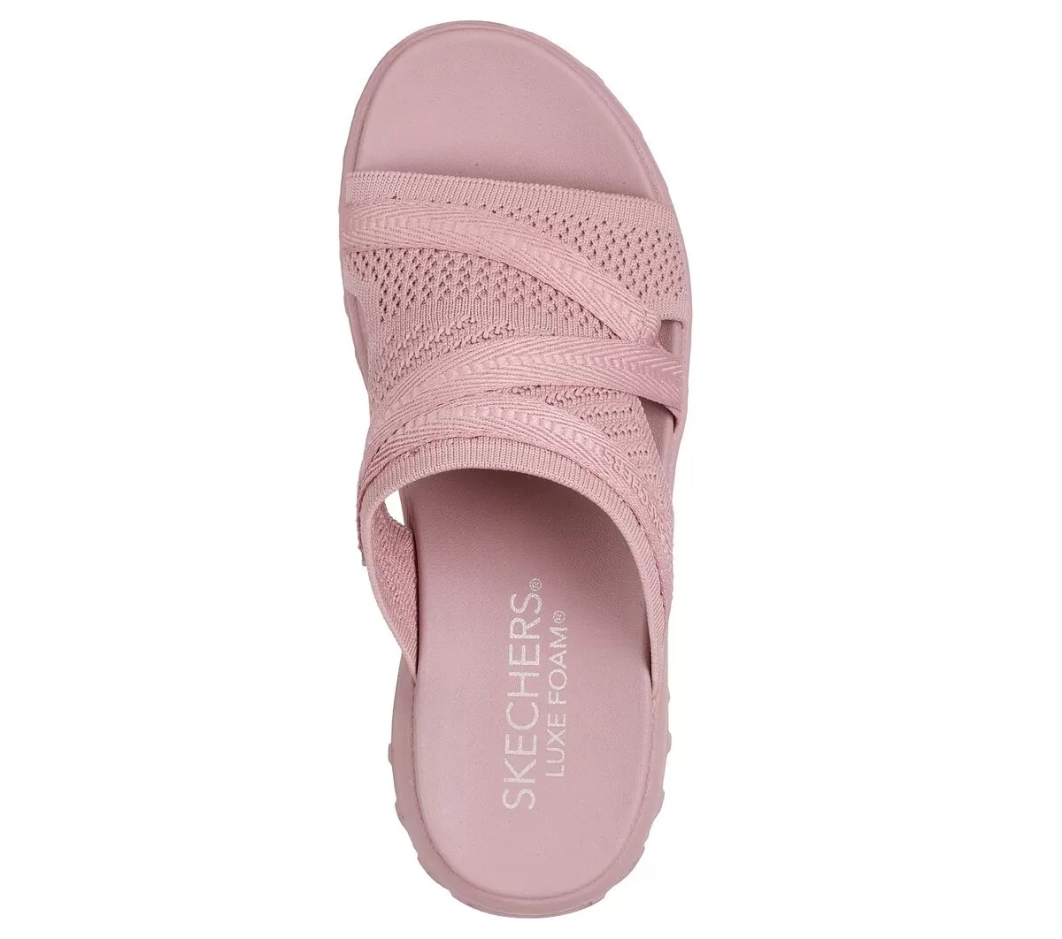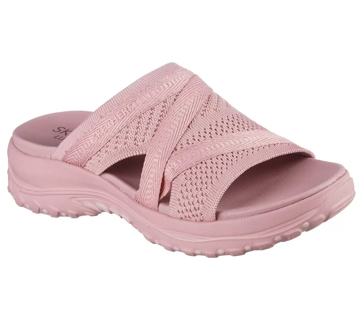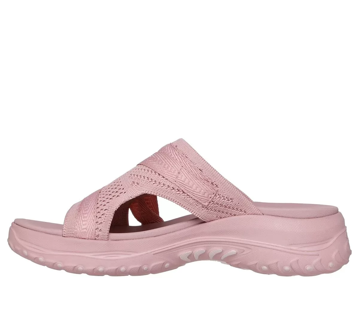 Comfort and breezy style makes a loving pair with Skechers Reggae Bound – Everyday Classic. This outdoor trail slide sandal features a knit upper with webbing overlays, Luxe Foam® cushioned footbed, and a shock-absorbing Reggae midsole for added support.