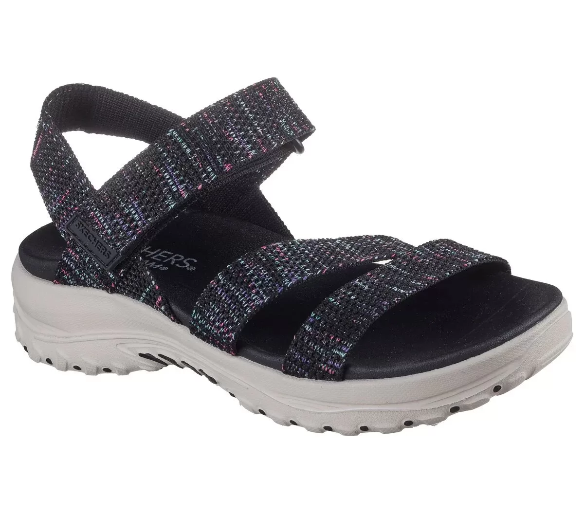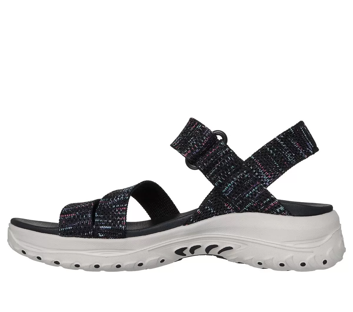Ample cushioning and breezy style makes a well-suited pair with Skechers Reggae® Bound – Sweet Crush. This outdoor vegan trail sandal features a multi knit upper with an adjustable instep strap, a Luxe Foam® cushioned footbed, and a shock-absorbing Reggae® midsole for added comfort.